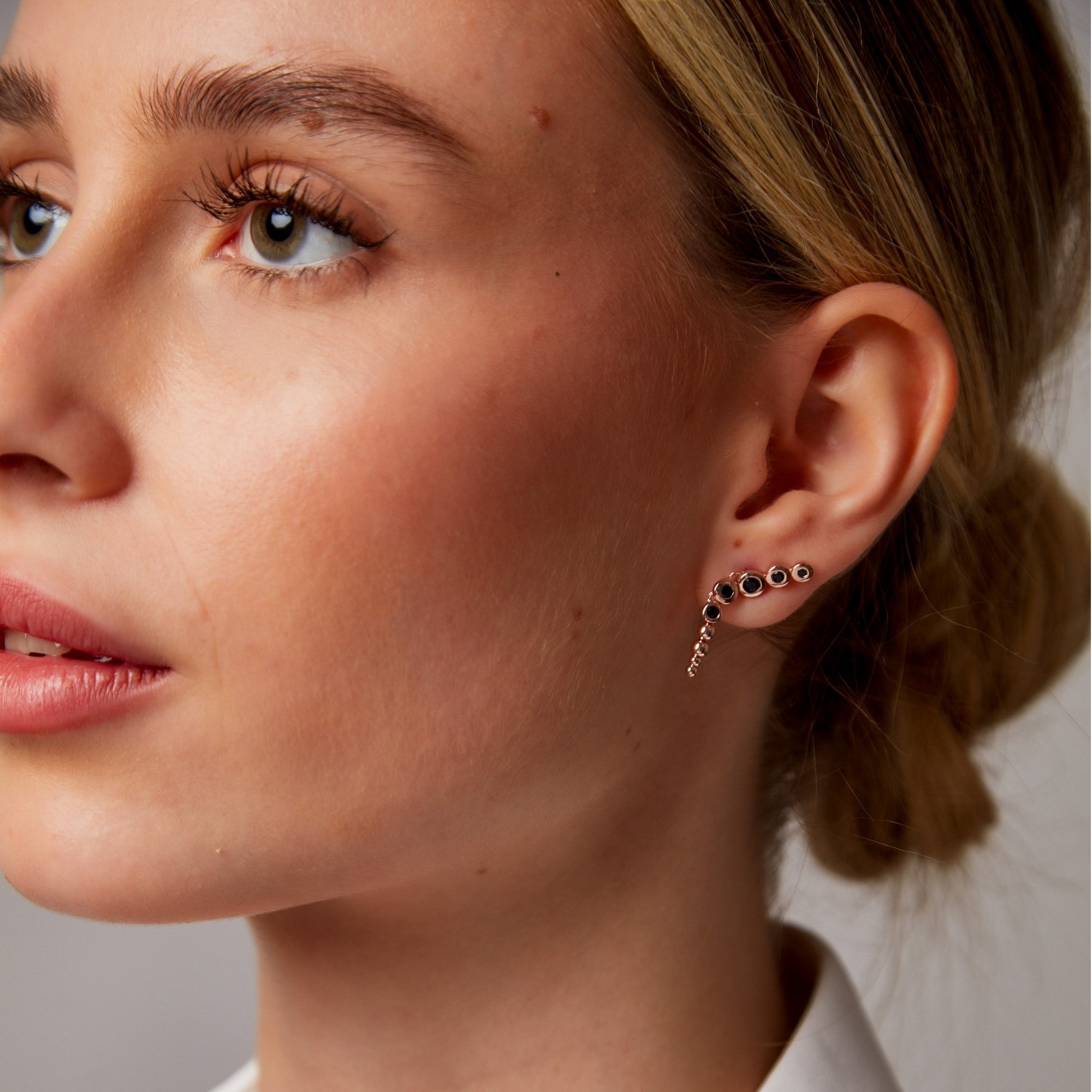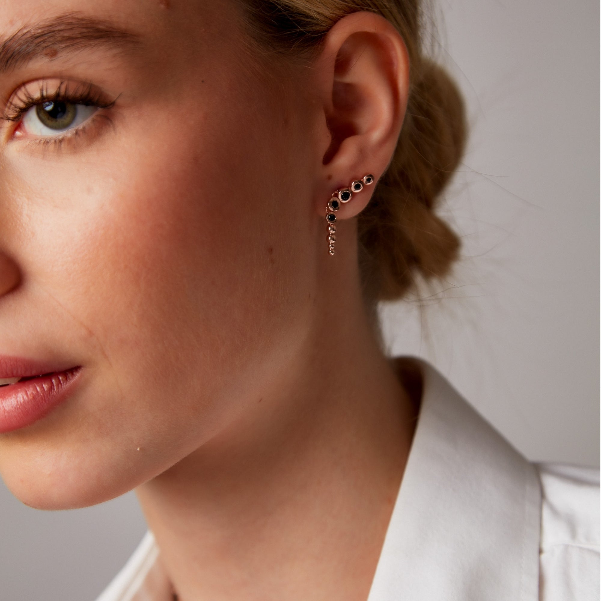 Cercei "Noura" din Argint Placat cu Aur Roz de 18k și Onix Negru Natural