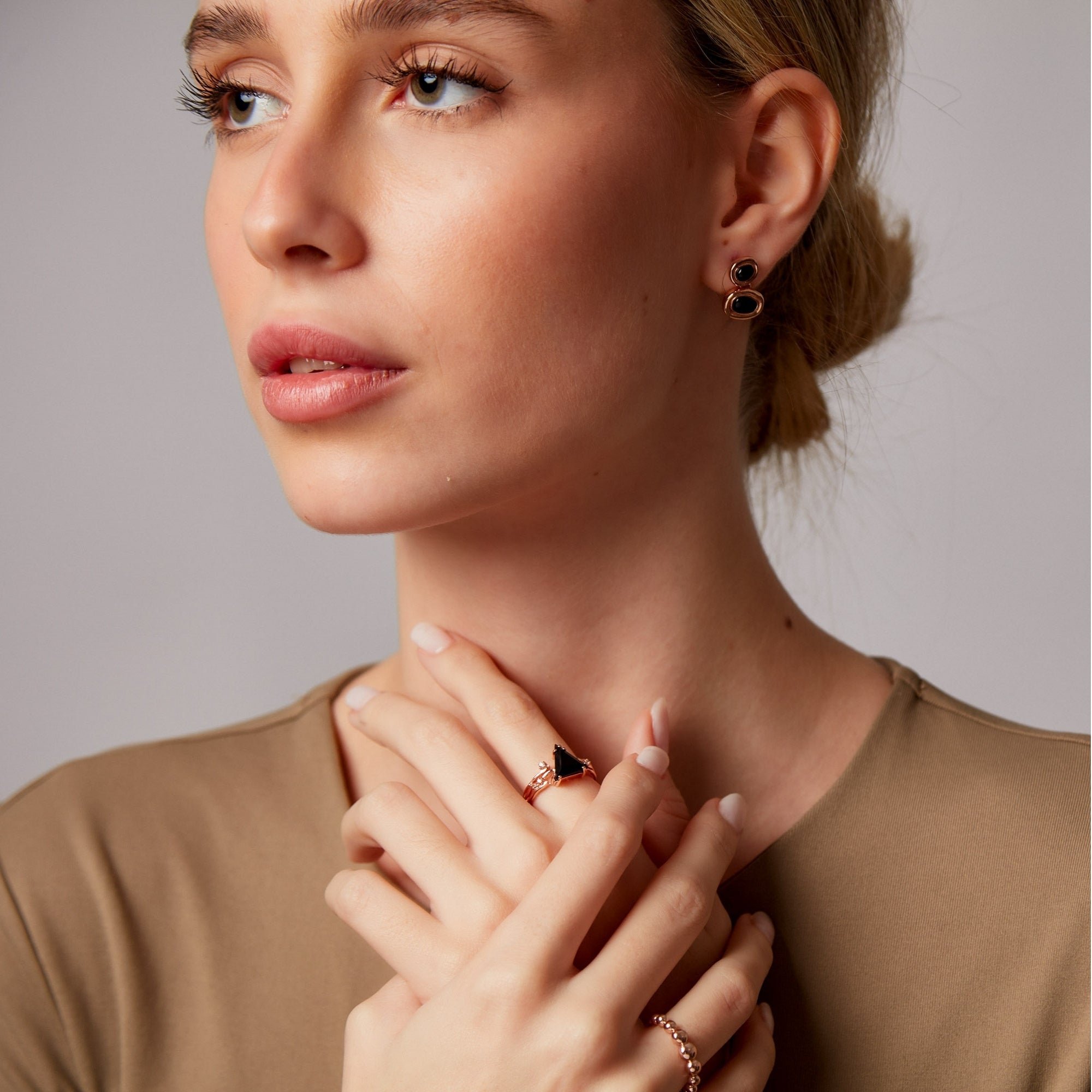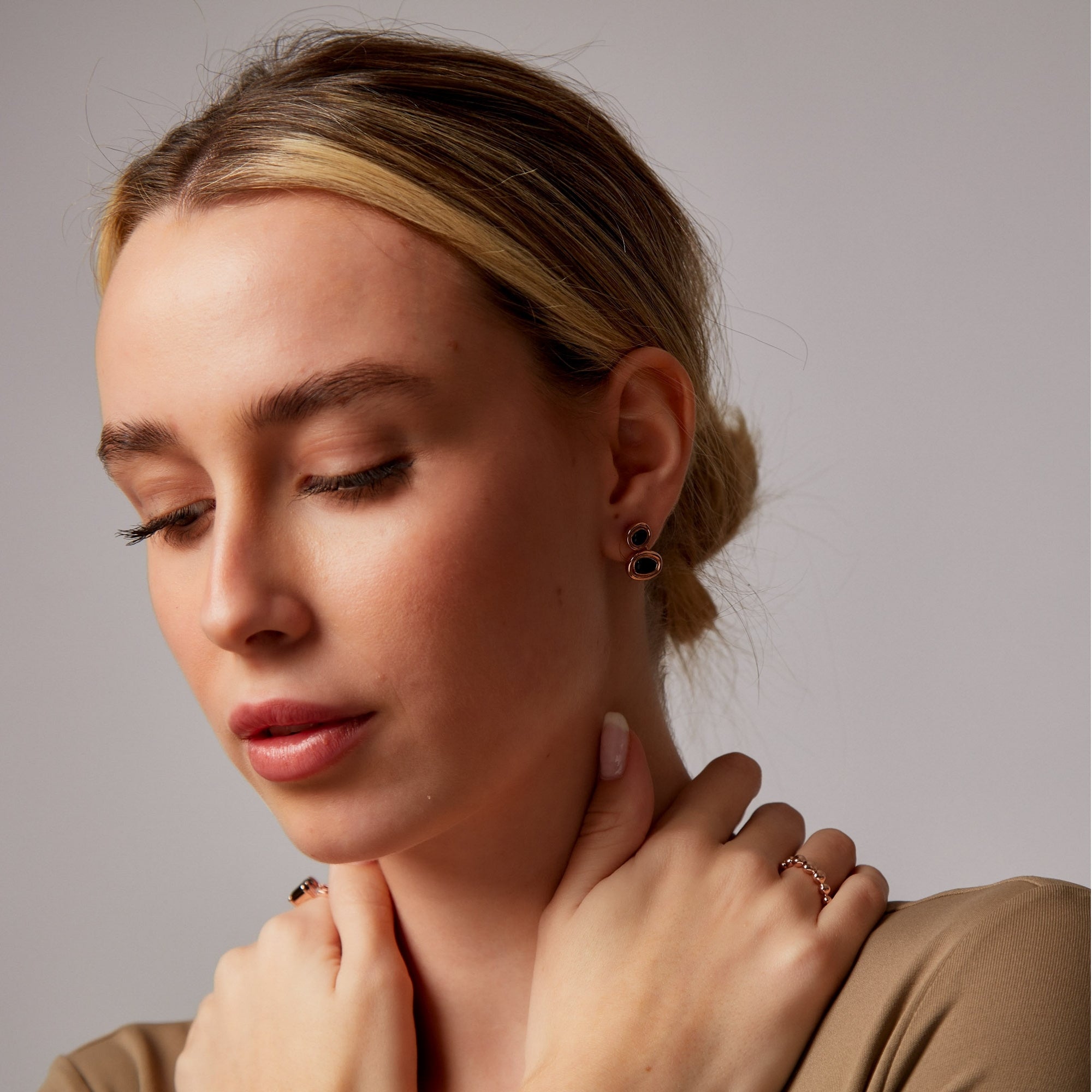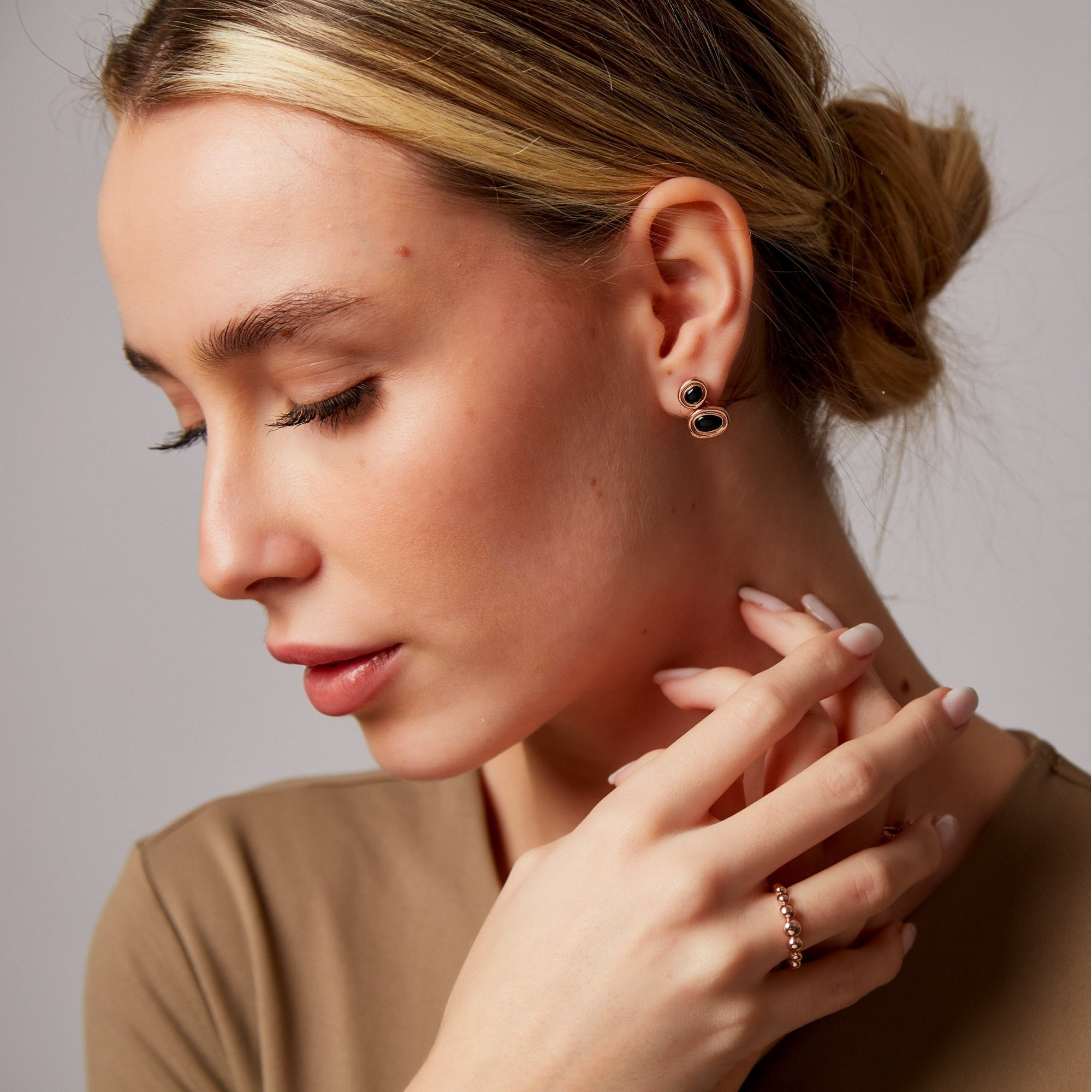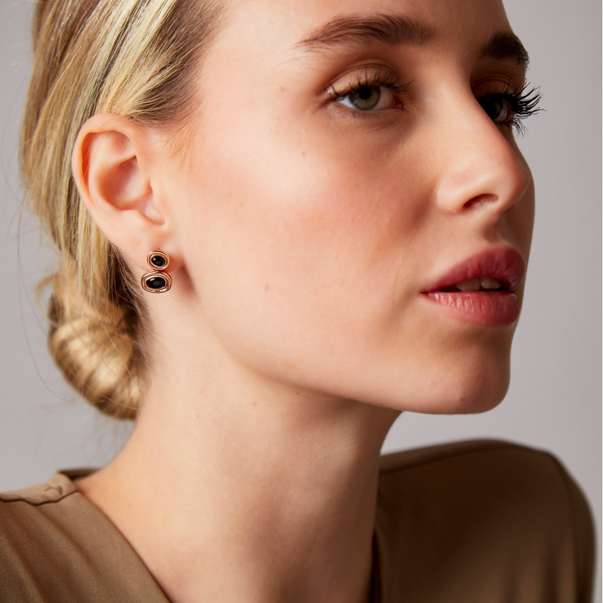 Cercei "Satta" din Argint Placat cu Aur Roz de 18k și Onix Negru Natural