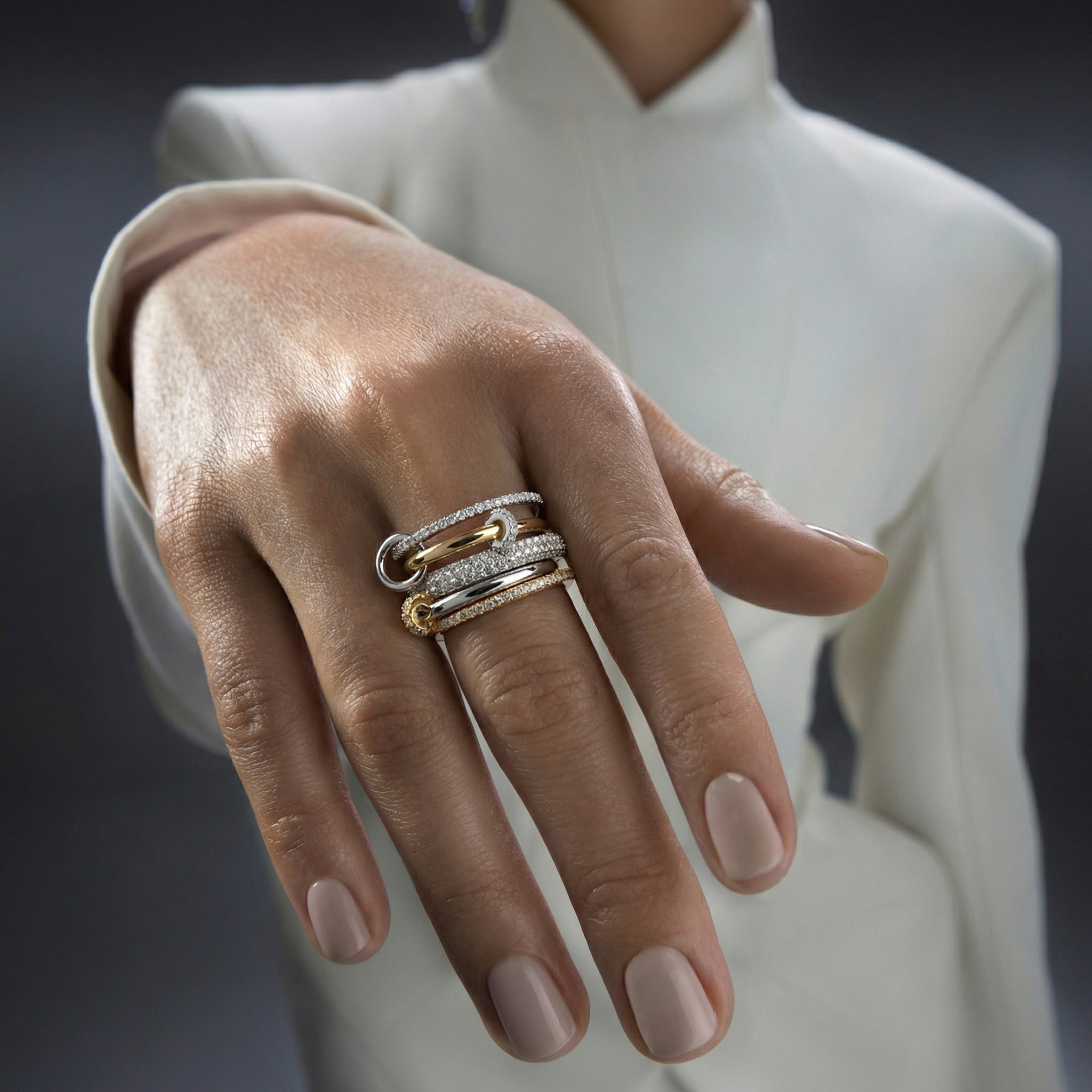 Inelul "Linkz" Monalisa Ultra White este varianta îmbunătățită a iconicului inel Linkz Monalisa. Designul său cu forme interconectate și combinații de metale contrastează într-un mod sofisticat, fiind ideal pentru a atrage atenția în orice context.