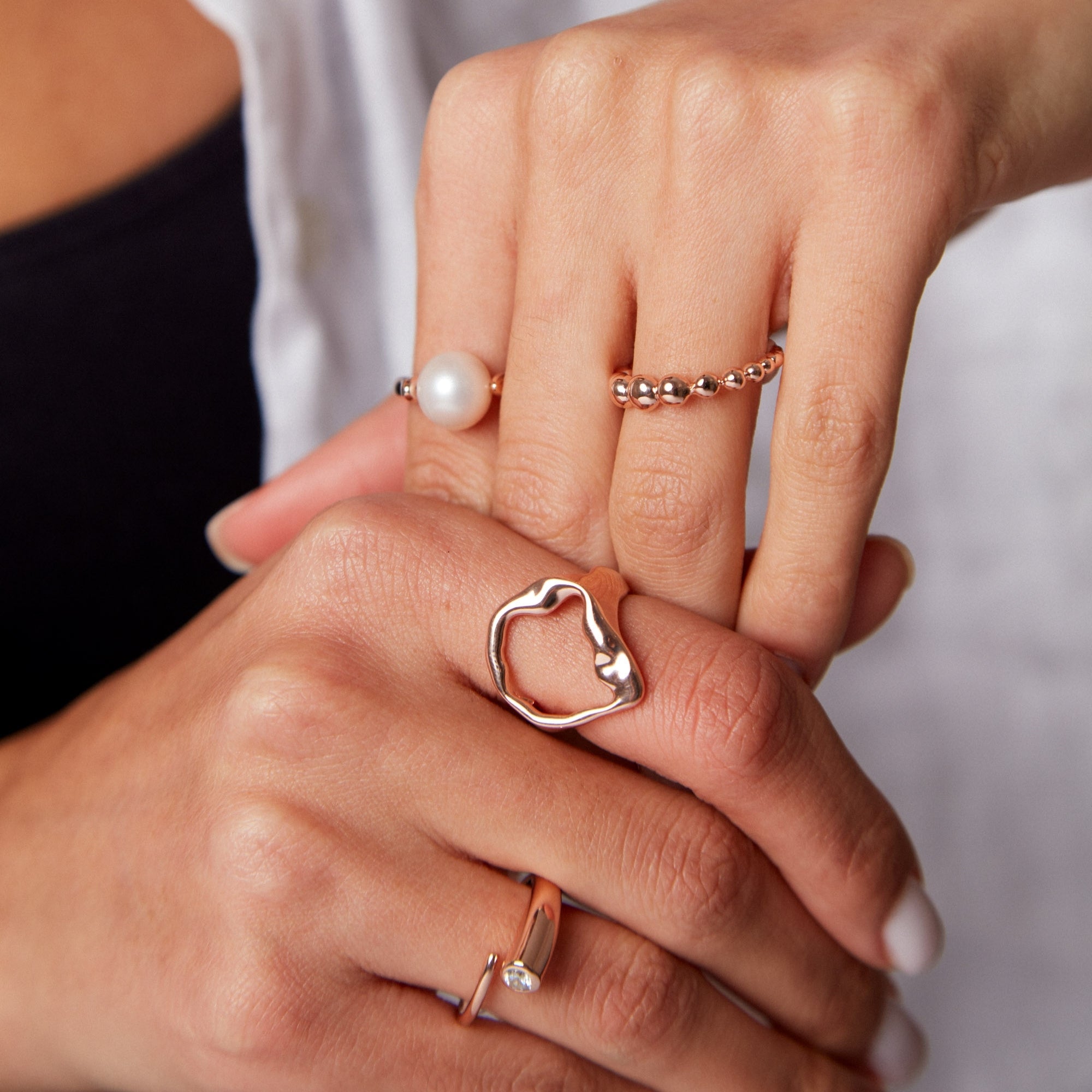Add the "Poki" Rose Gold Ring with Natural White Zircon to your collection for an elegant style with subtle accents of freshness and originality.