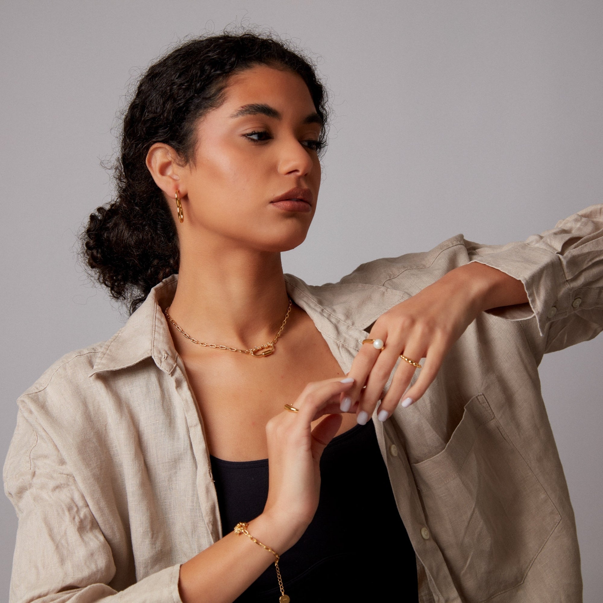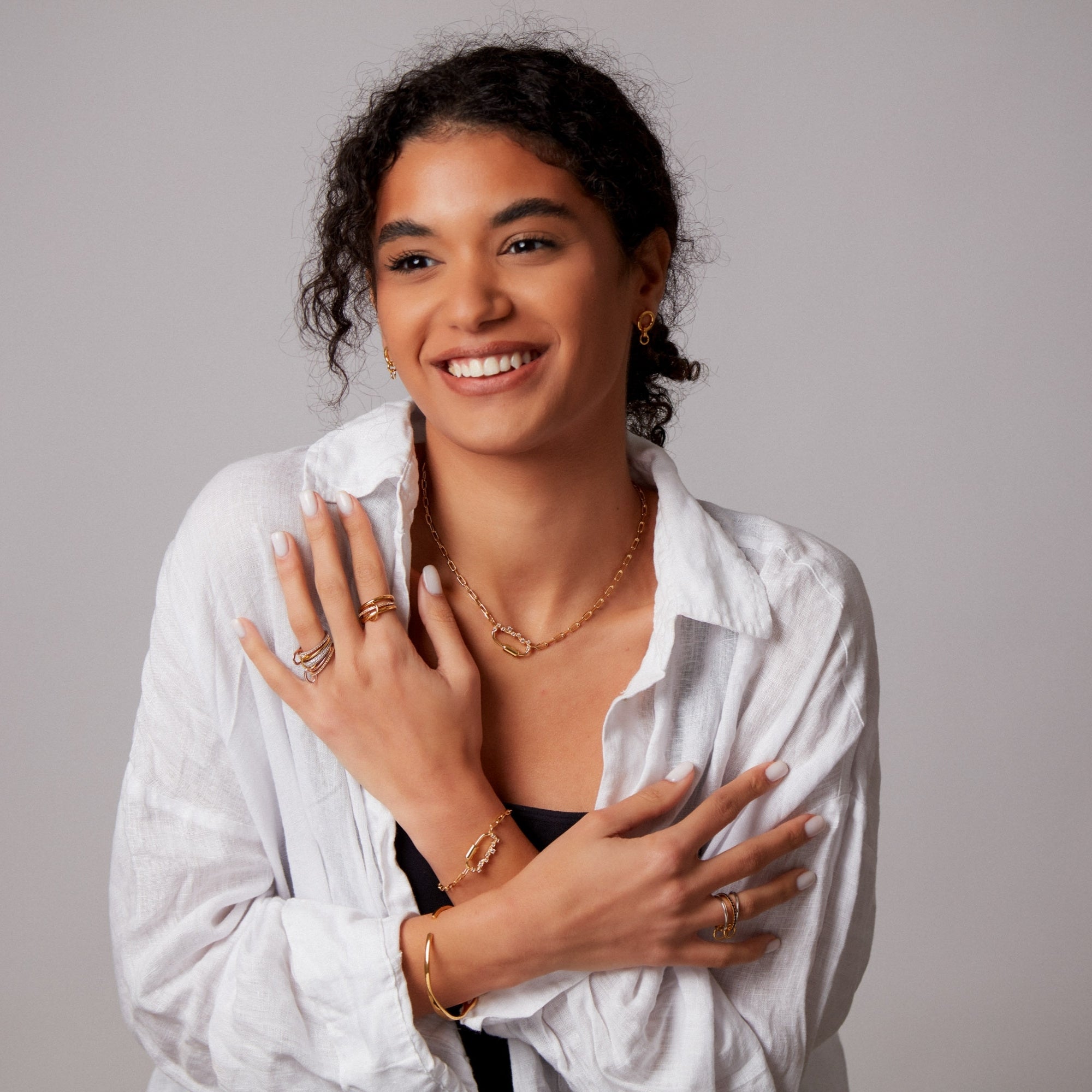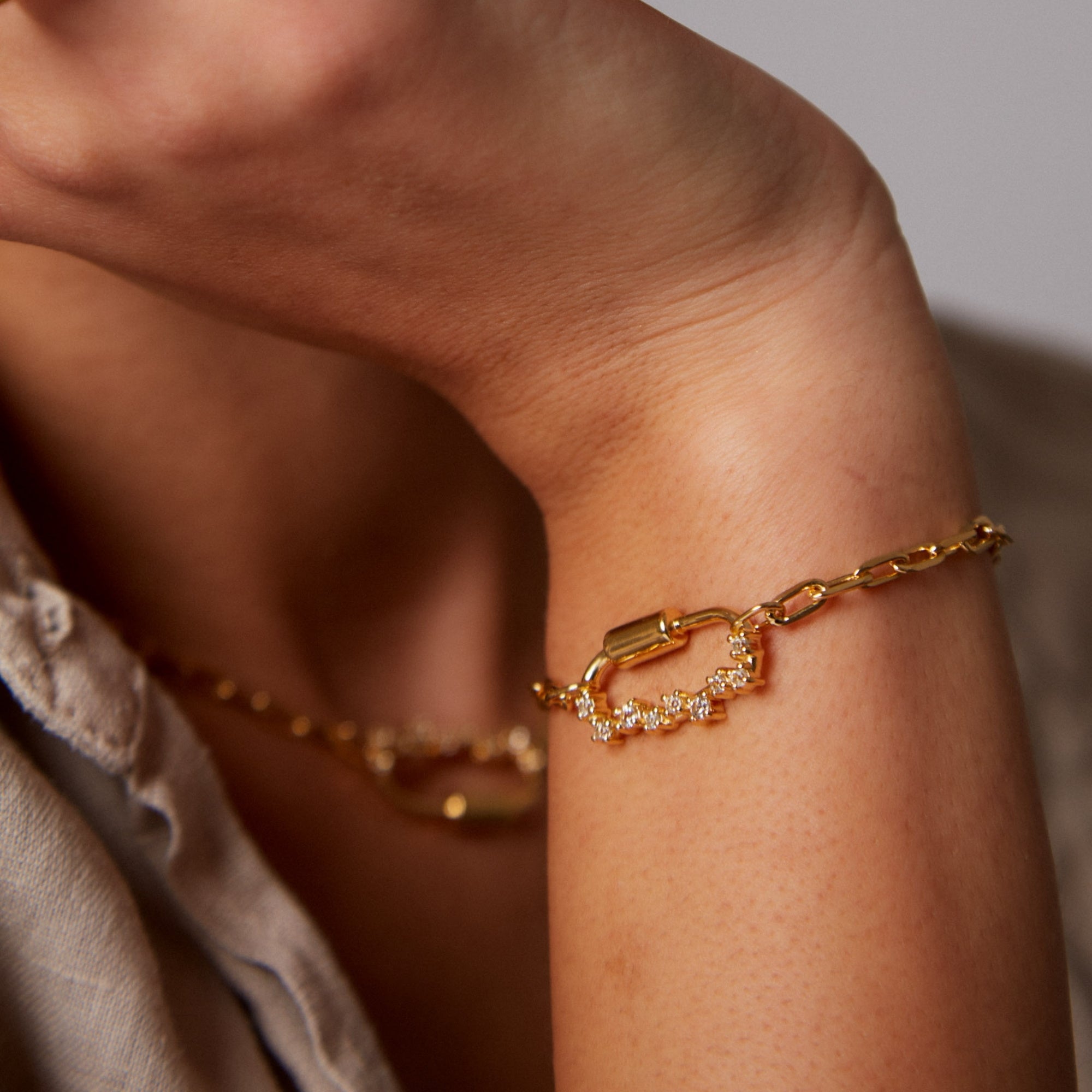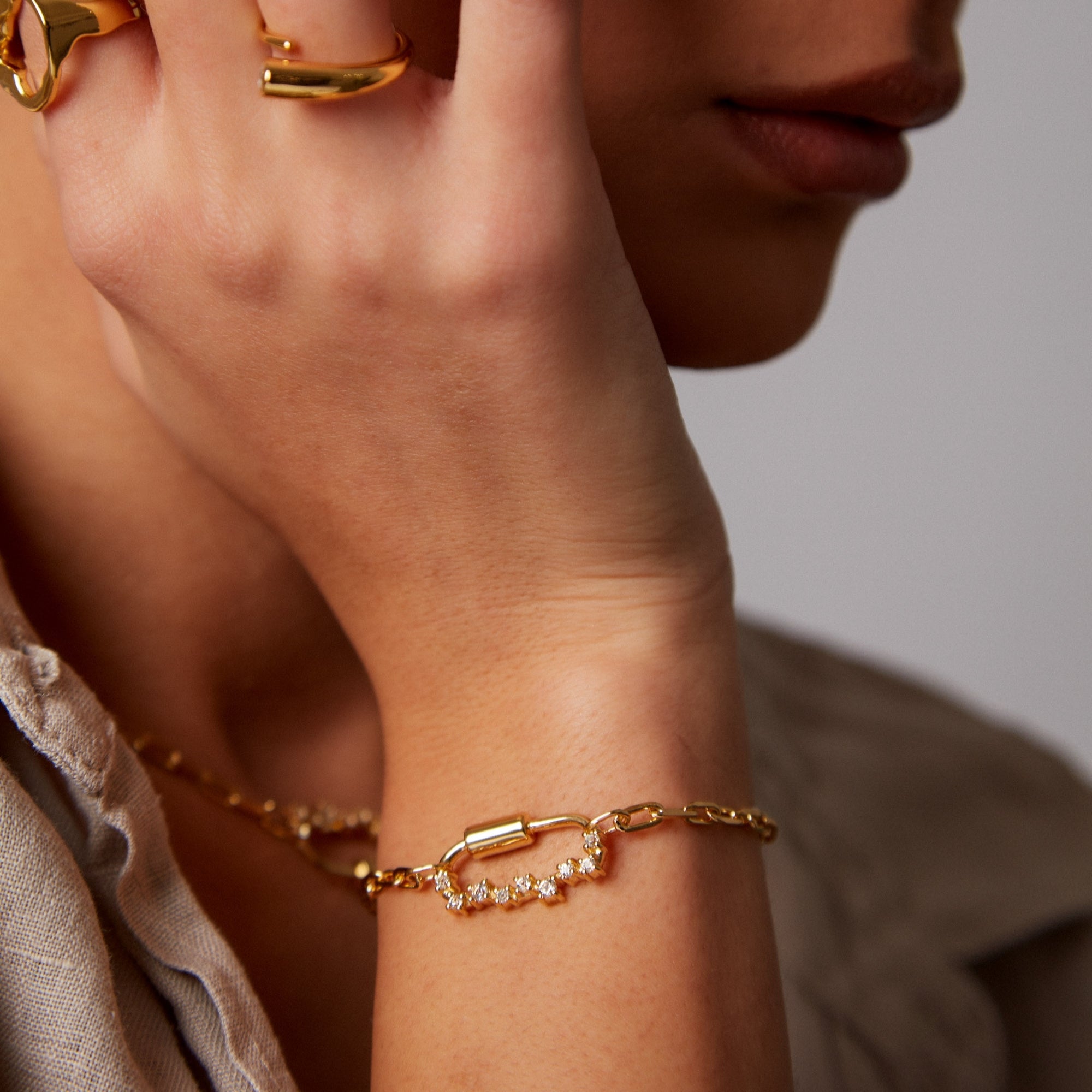 Complete your collection with the "Poki" Yellow Gold Bracelet with Natural White Topaz to add a sophisticated and lively accessory, perfect for expressing your unique style and personality.