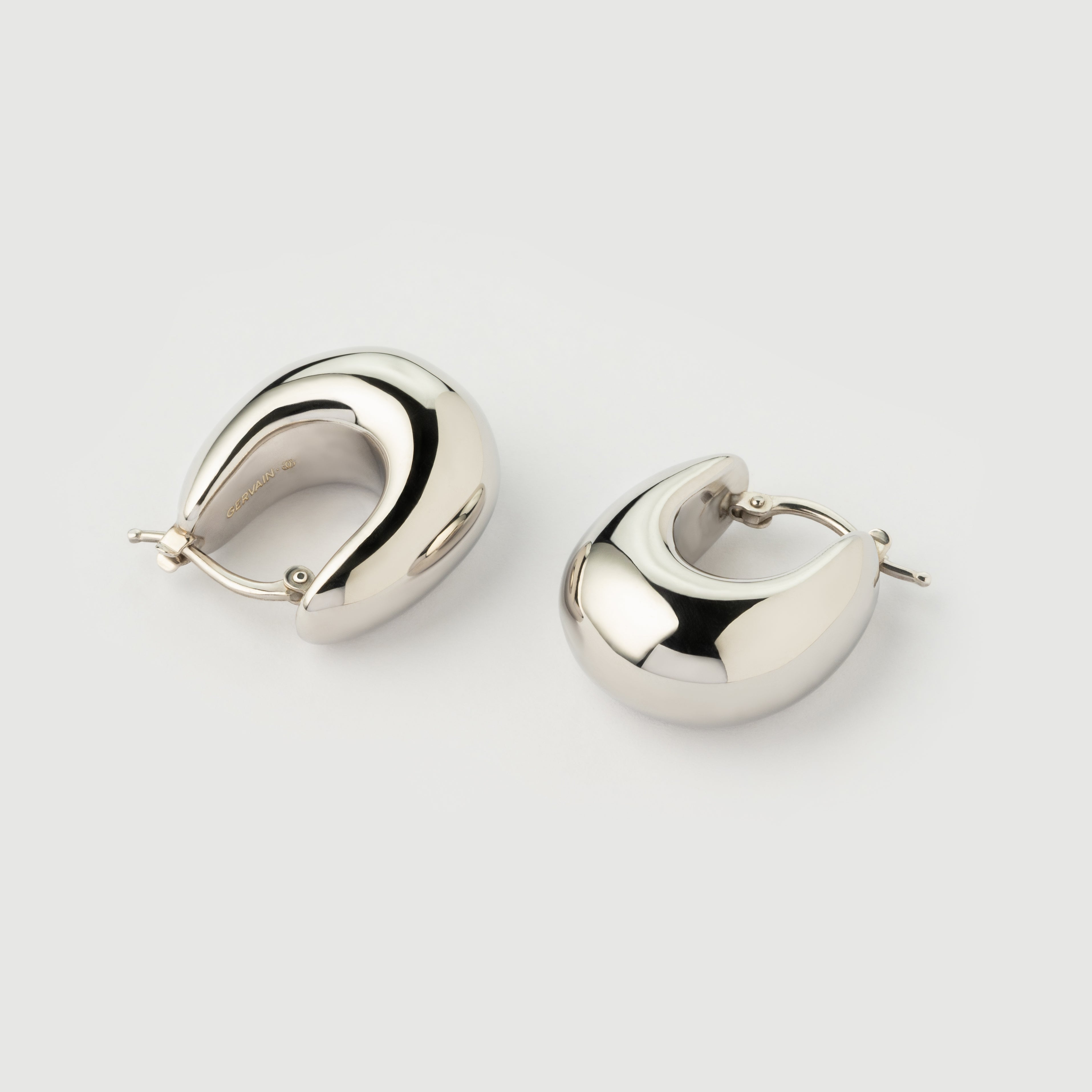 "Capri" White Gold Earrings impress with the unique texture of the metal, which creates incredible reflections, highlighting the skin in a subtle and elegant way. Their modern and refined design makes them ideal for any occasion, from casual meetings to special events. 18k white gold plating, according to the French "Vermeil" standard, adds an extra touch of luxury and superior quality.