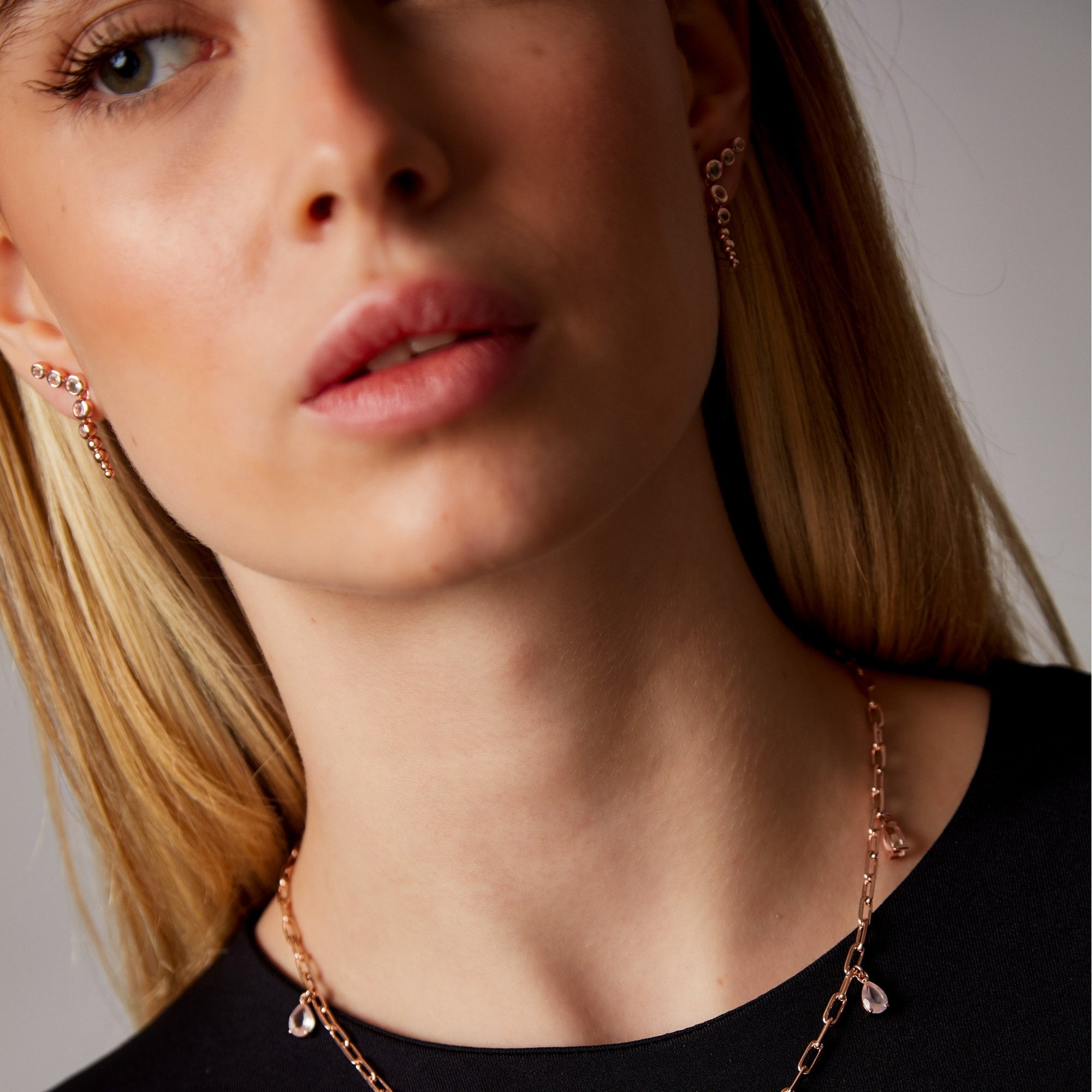 Add the "Haze" Rose Gold Earrings with Natural Rose Quartz to your collection to enjoy a sophisticated and natural accessory, perfect to emphasize your unique style.
