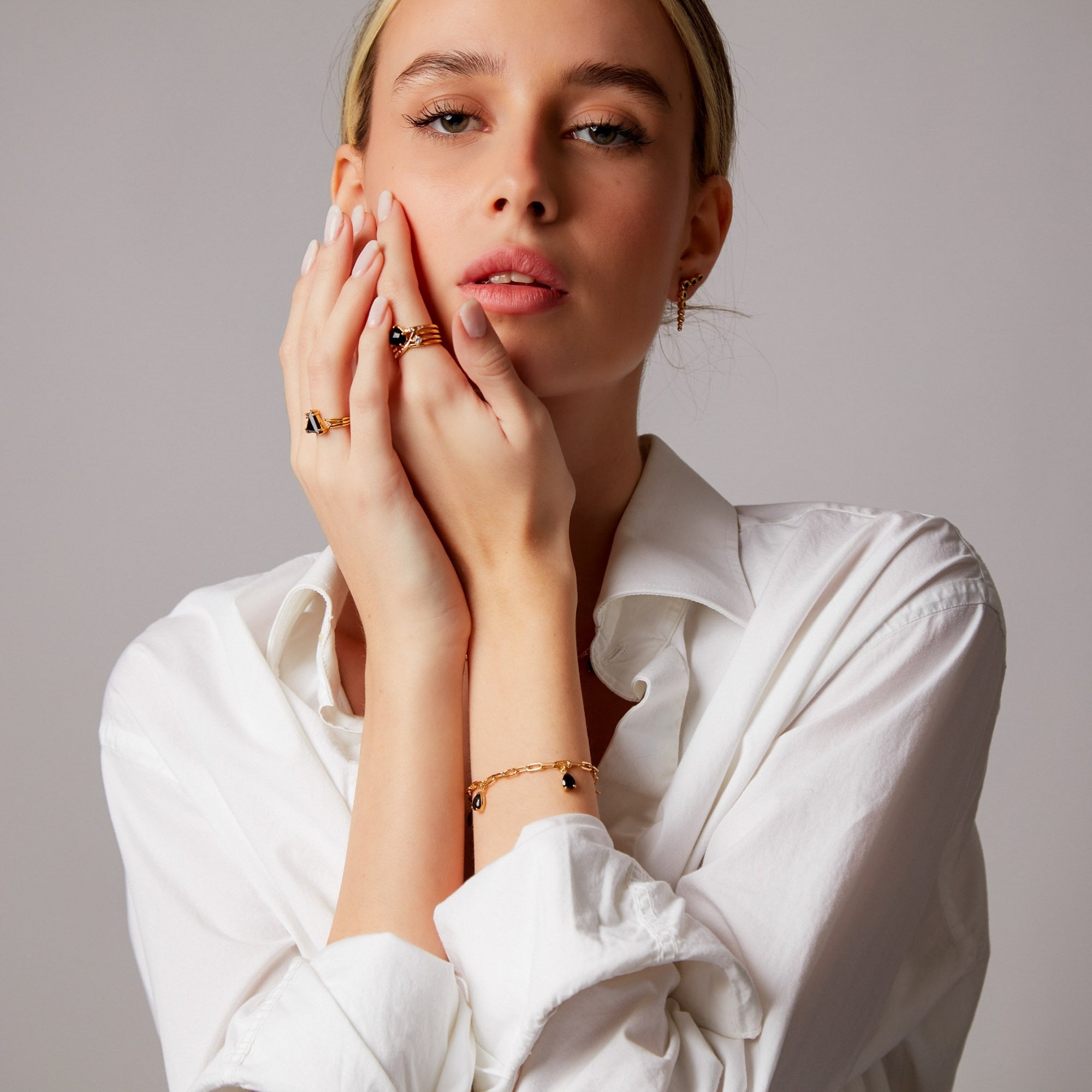 Add the "Haze" Yellow Gold Bracelet with Natural Black Onyx to your collection for a sophisticated and unique accessory that reflects elegance and mystery in every detail.