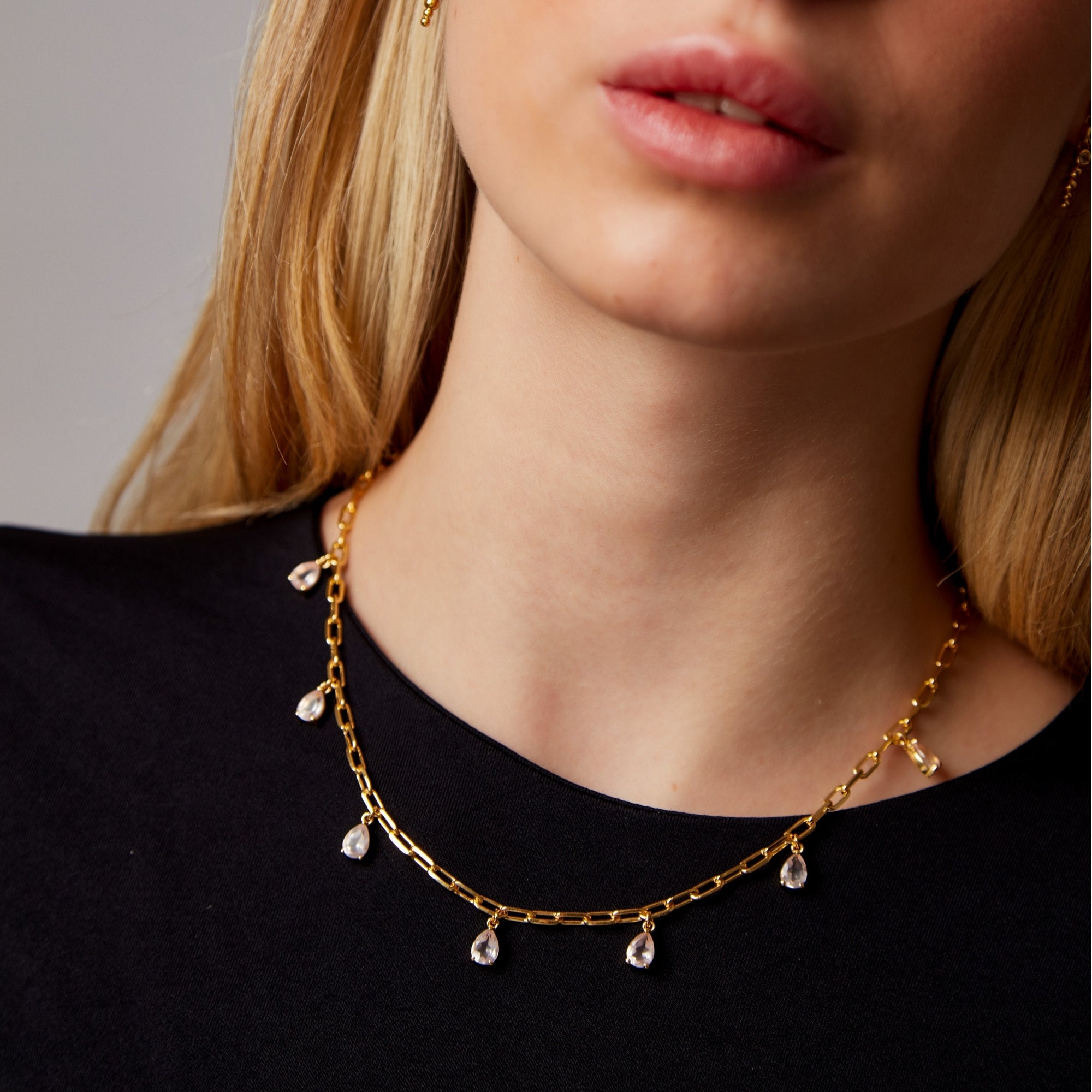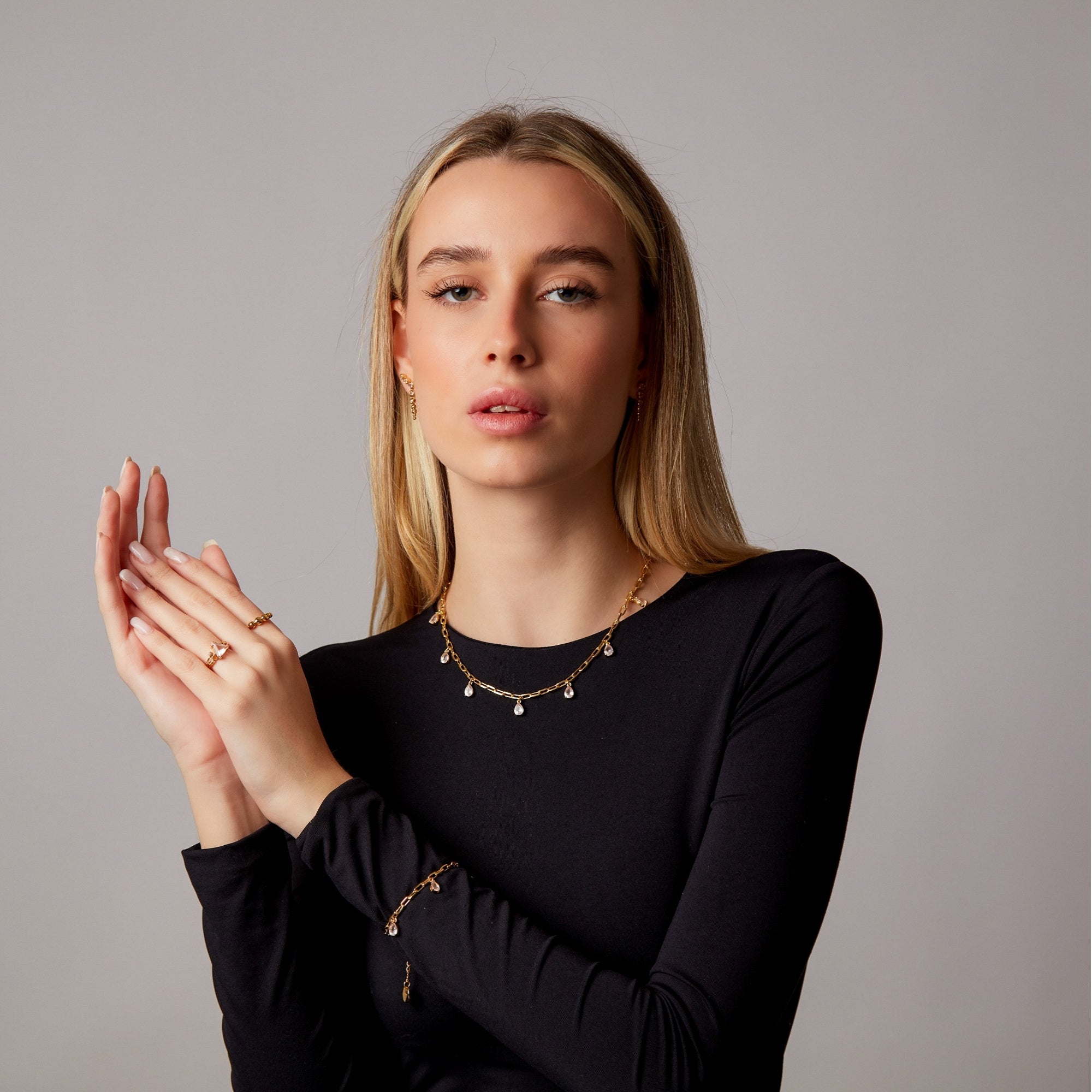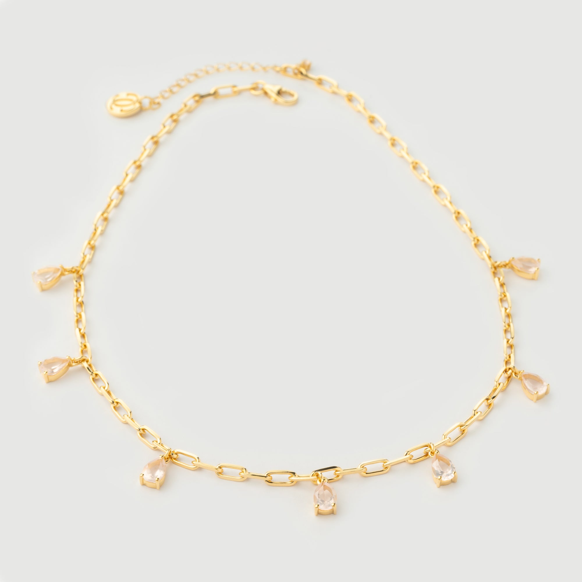Add the "Haze" Yellow Gold Necklace with Natural Rose Quartz to your collection for a refined accessory that emphasizes your unique style and adds a touch of sparkle to any outfit.