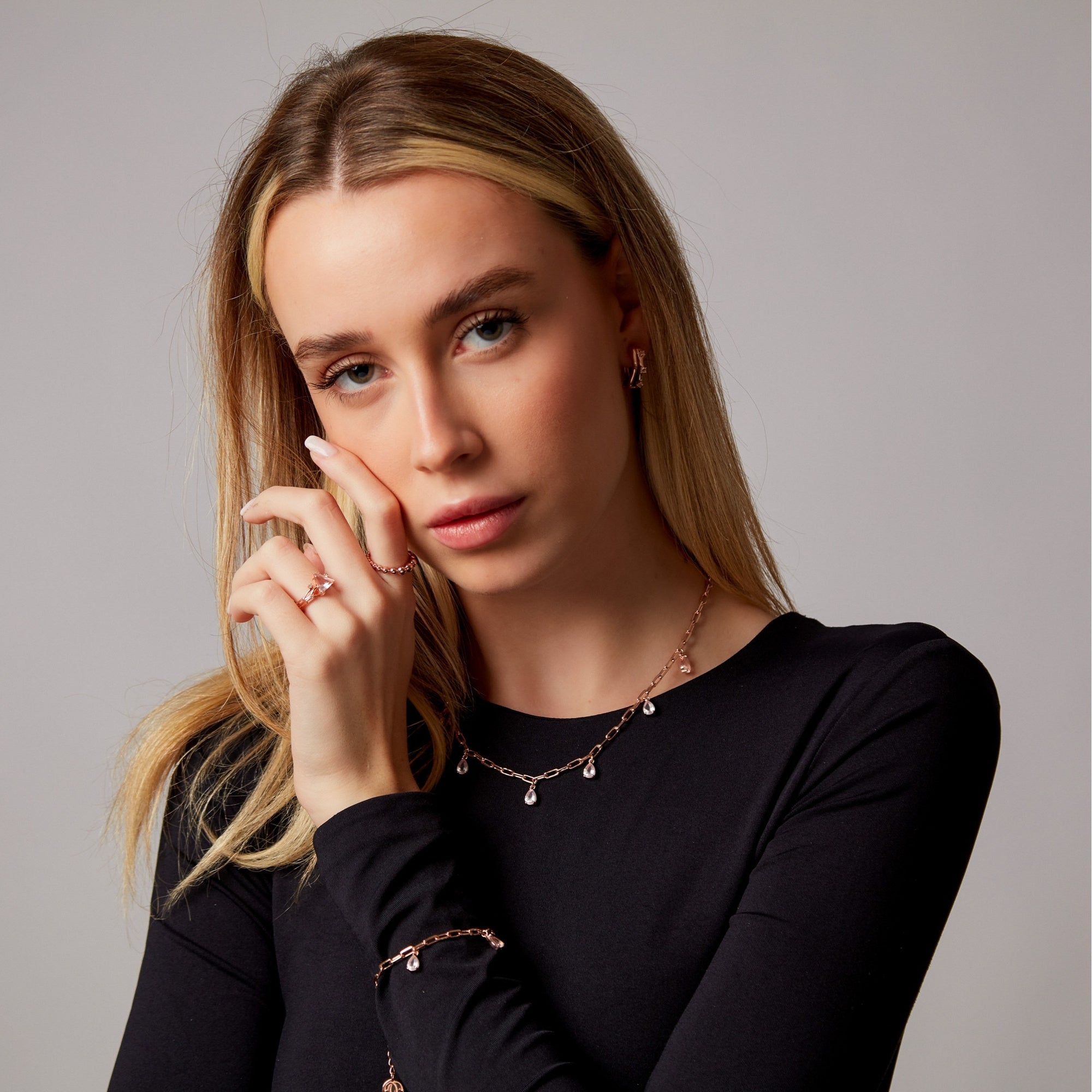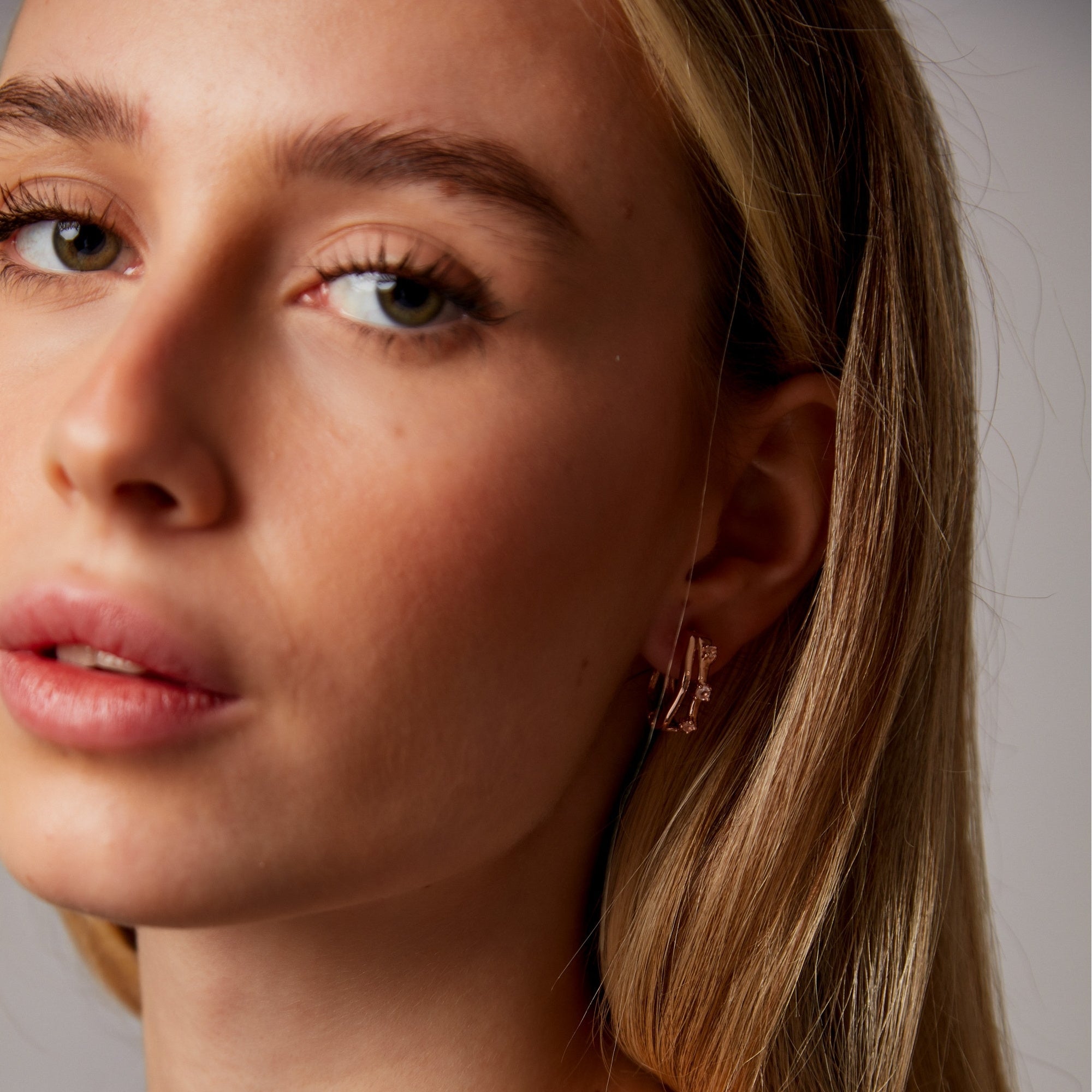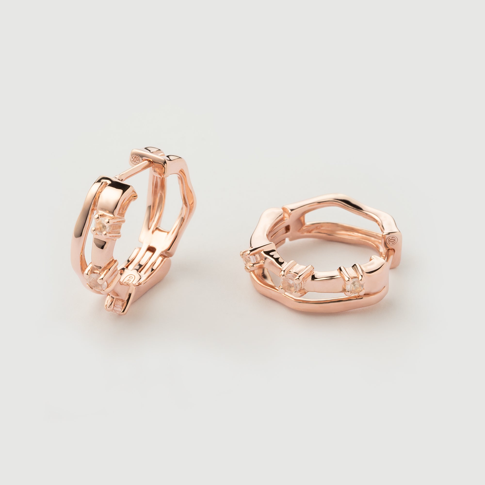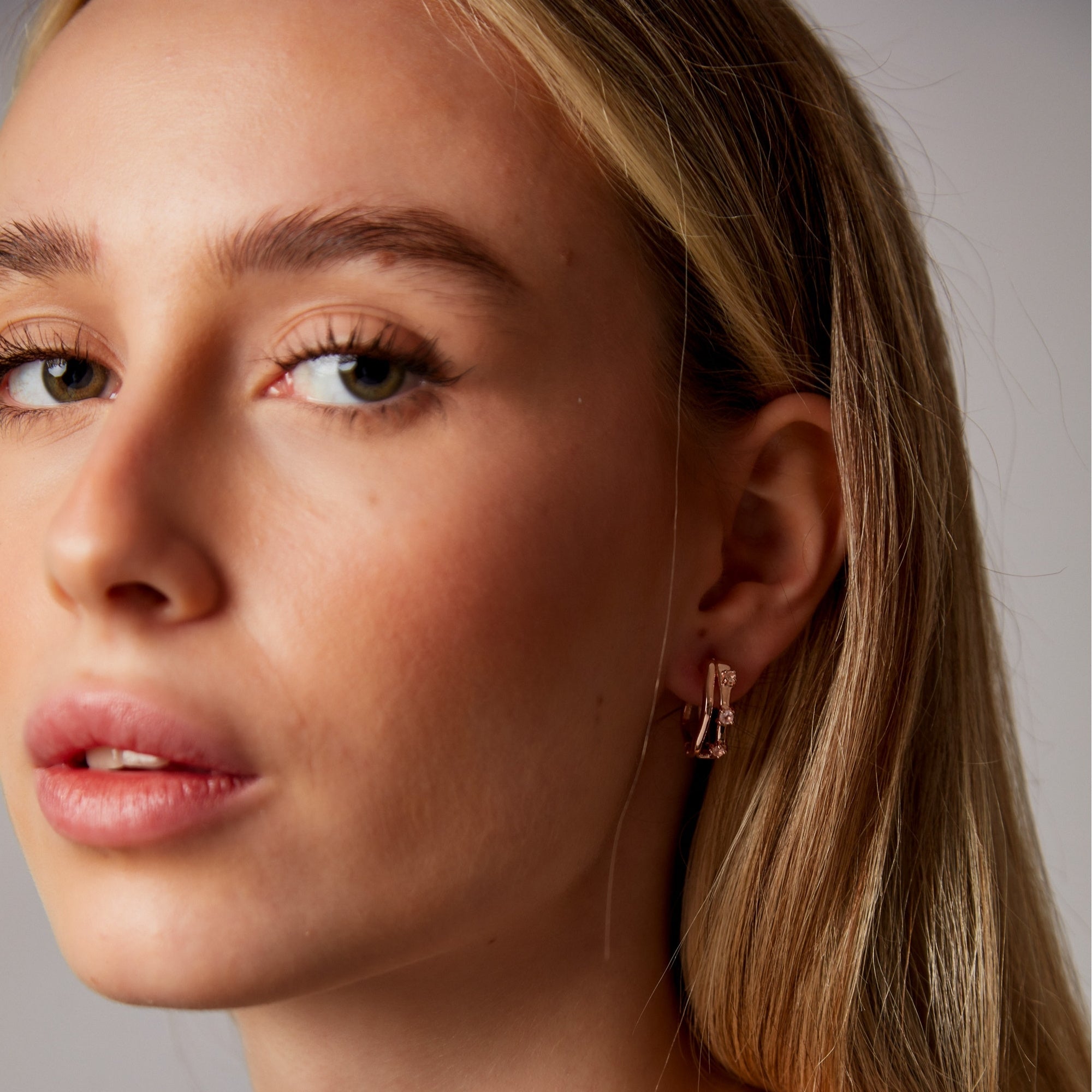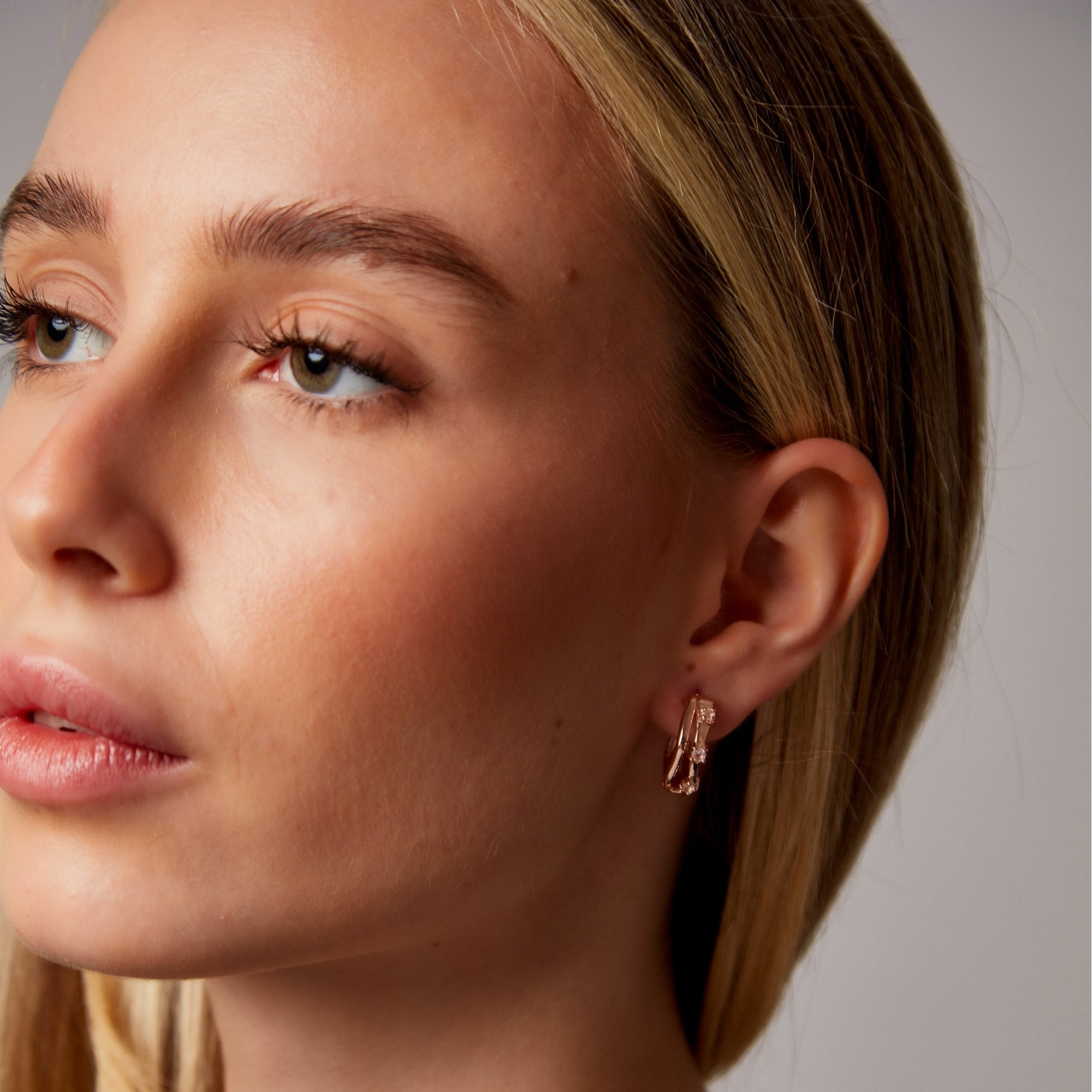 Add the "Hera" Rose Gold Earrings with Natural Rose Quartz to your collection for a unique accessory that brings a touch of sophistication and style to any moment.
