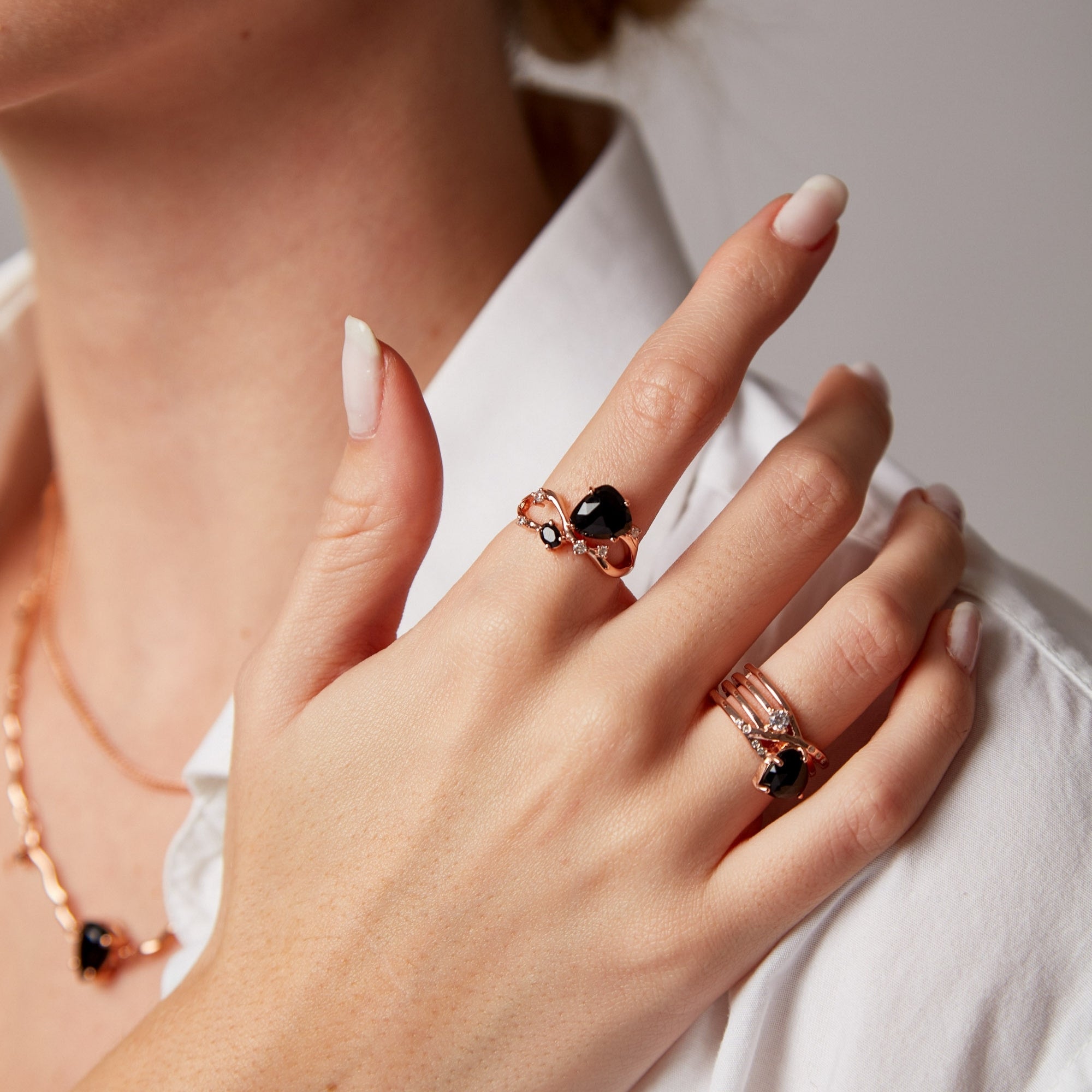 Add the "Hera" Rose Gold Ring with Natural Black Onyx to your collection to enjoy a spectacular piece that combines mystery and sophistication in a unique way.