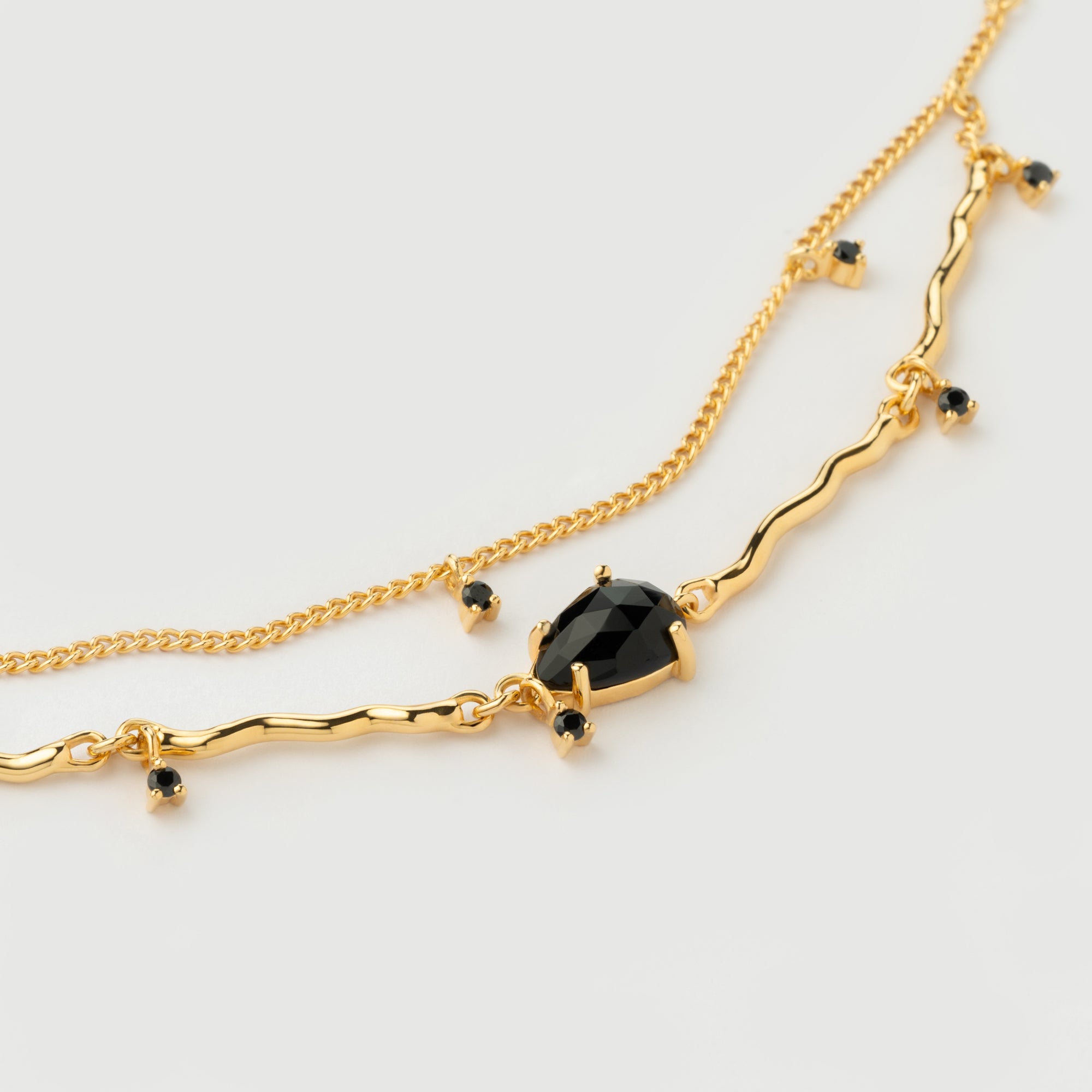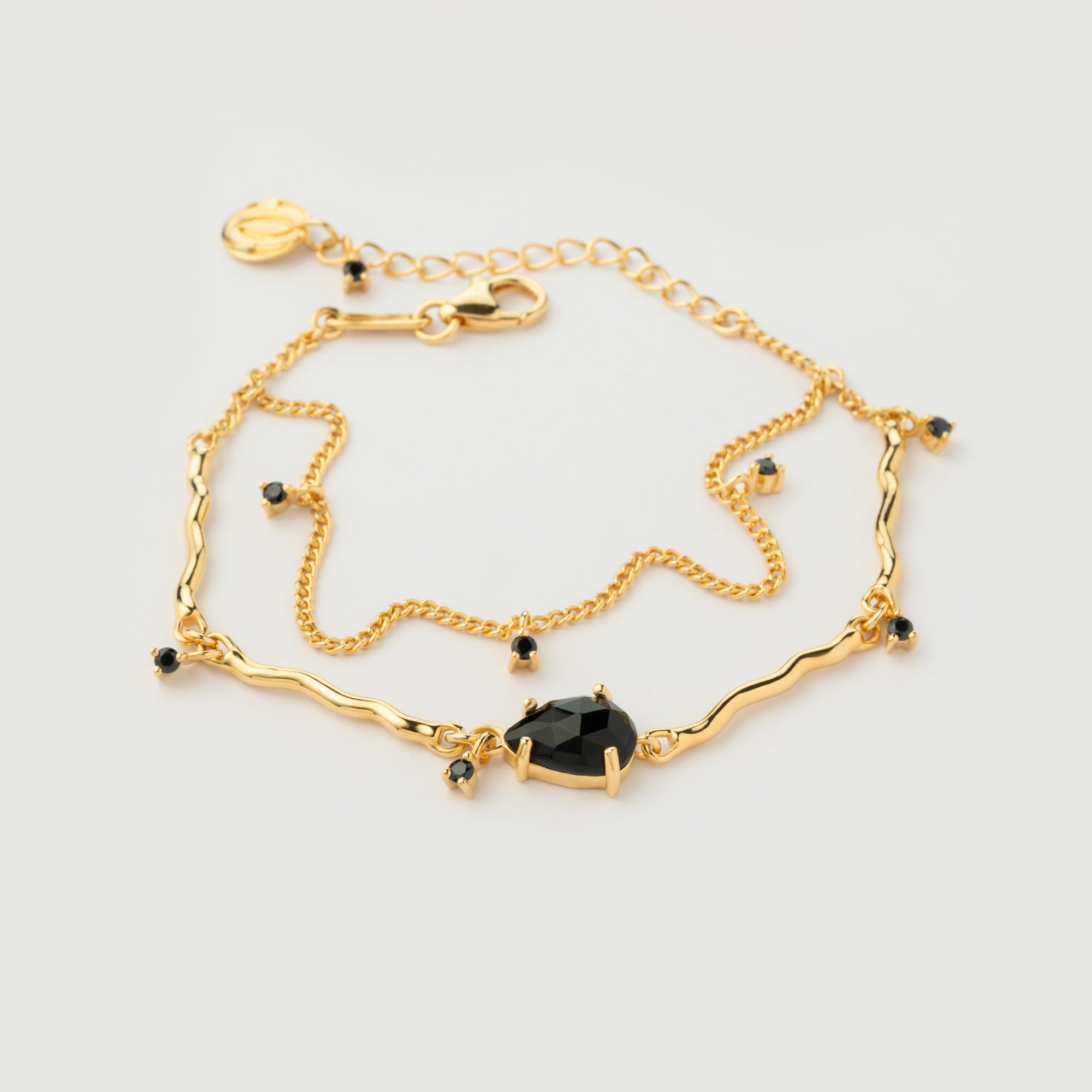 "Hera" Yellow Gold Bracelet with Natural Black Onyx