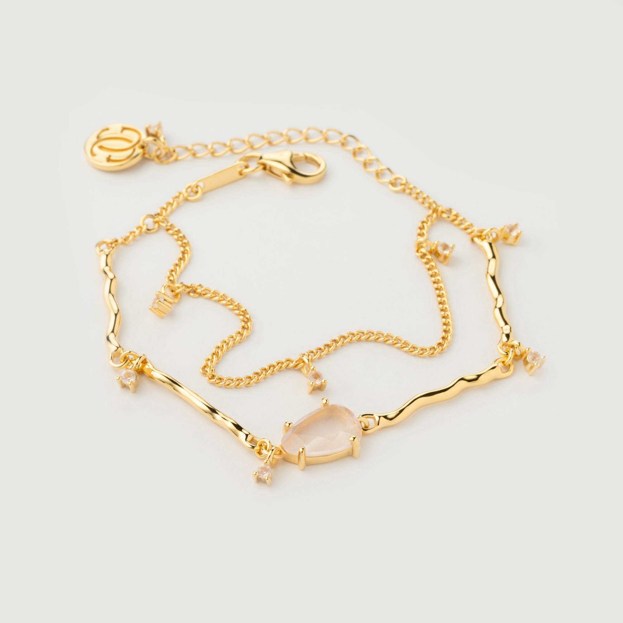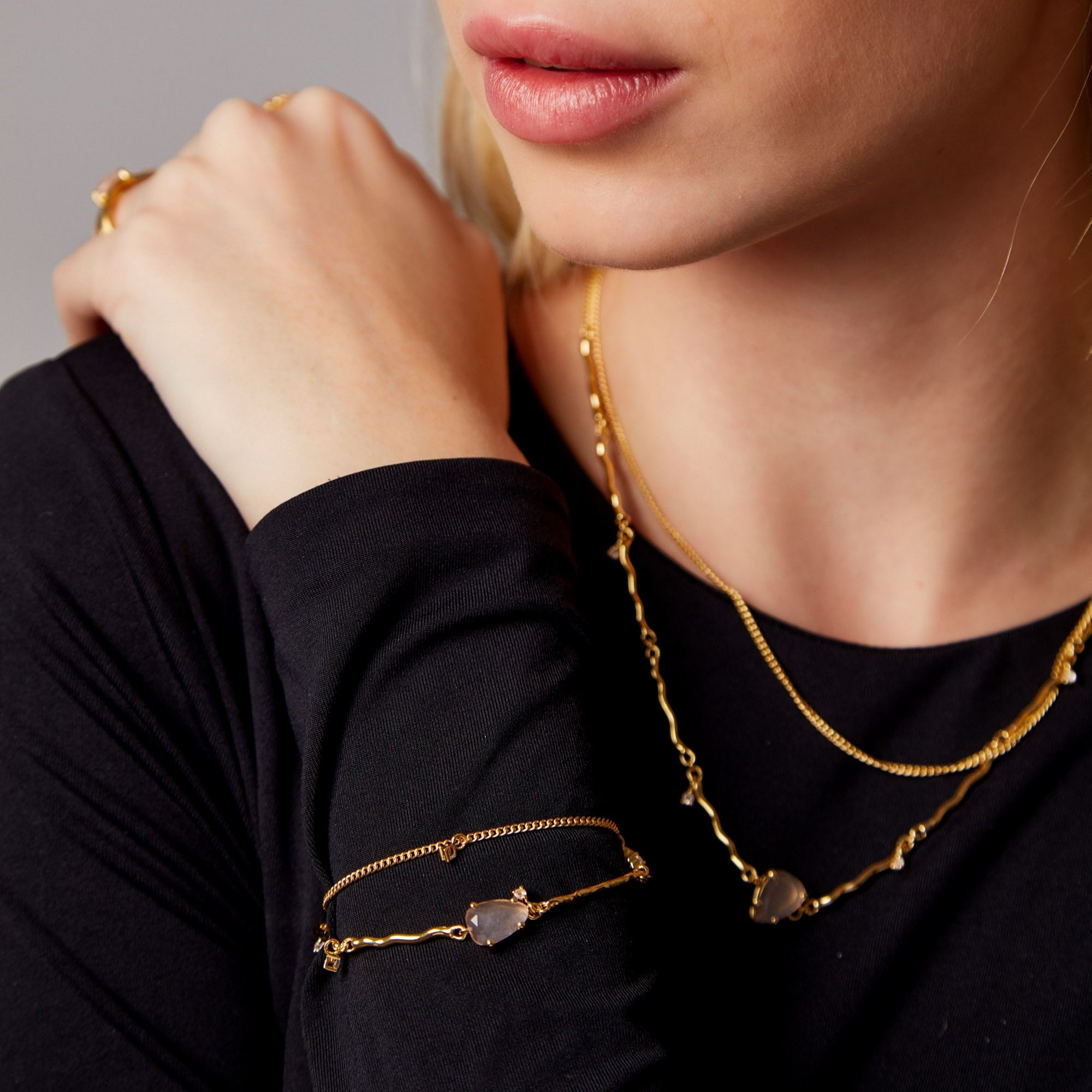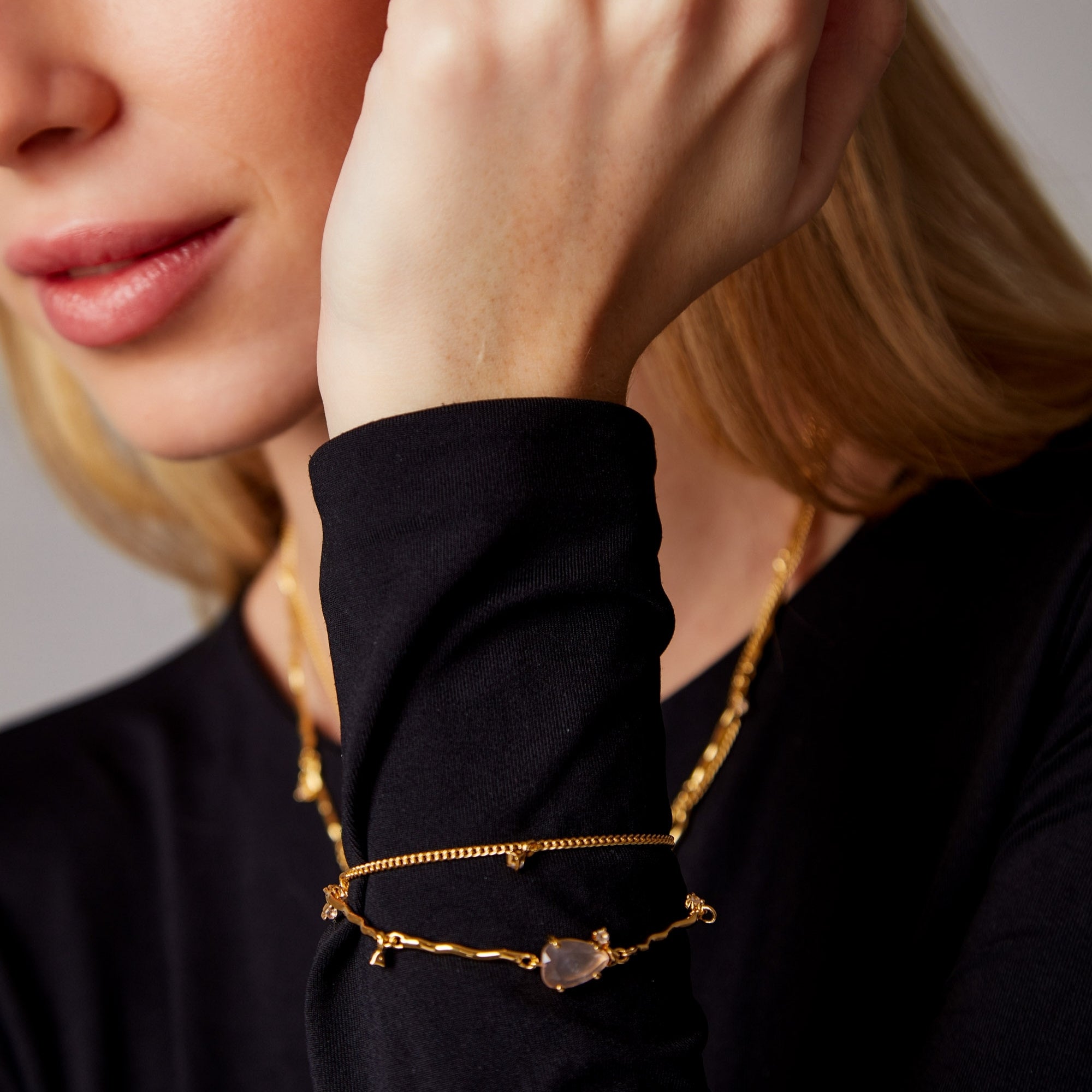 Plated with 18k yellow gold according to the French "Vermeil" standard, the piece has a luxurious finish and great quality. The invisible nano-ceramic protection guarantees the durability of the bracelet, giving it increased resistance against scratches and wear. Carefully crafted in our own workshops from sustainable materials and certified by Waarborg Holland, the "Hera" Yellow Gold Bracelet with Natural Rose Quartz is a gem that reflects excellence in every detail.