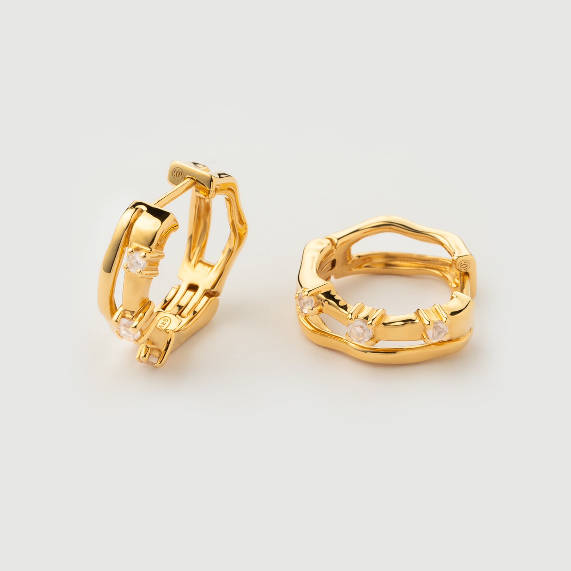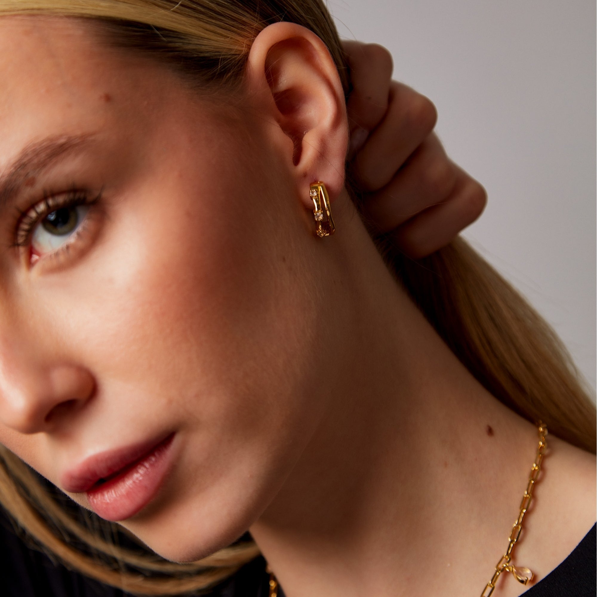 "Hera" Yellow Gold Earrings with Natural Rose Quartz stand out for their innovative design, with intricate shapes that combine the brilliance of metal with the delicacy of natural rose quartz. These earrings break the mold, bringing an extra touch of sophistication and uniqueness to every outfit. The 18k yellow gold plating, according to the French "Vermeil" standard, offers a touch of luxury and superior quality.