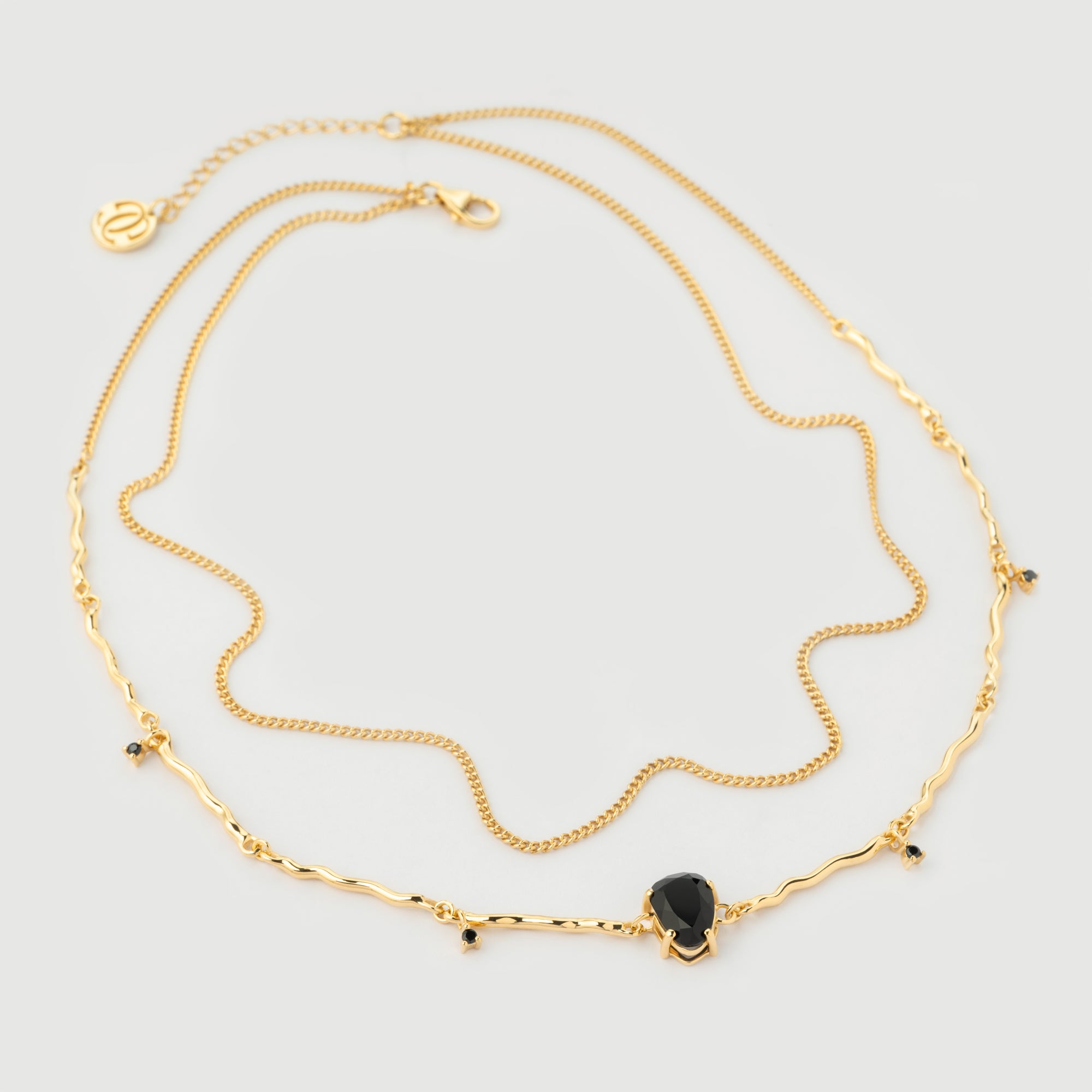 Plated with 18k yellow gold according to the French "Vermeil" standard, the necklace has a luxurious finish, and the invisible nano-ceramic layer ensures its durability against scratches and wear. Carefully crafted from sustainable materials in our own workshops and certified by Waarborg Holland, the "Hera" Yellow Gold Necklace with Natural Black Onyx reflects excellence and top quality.