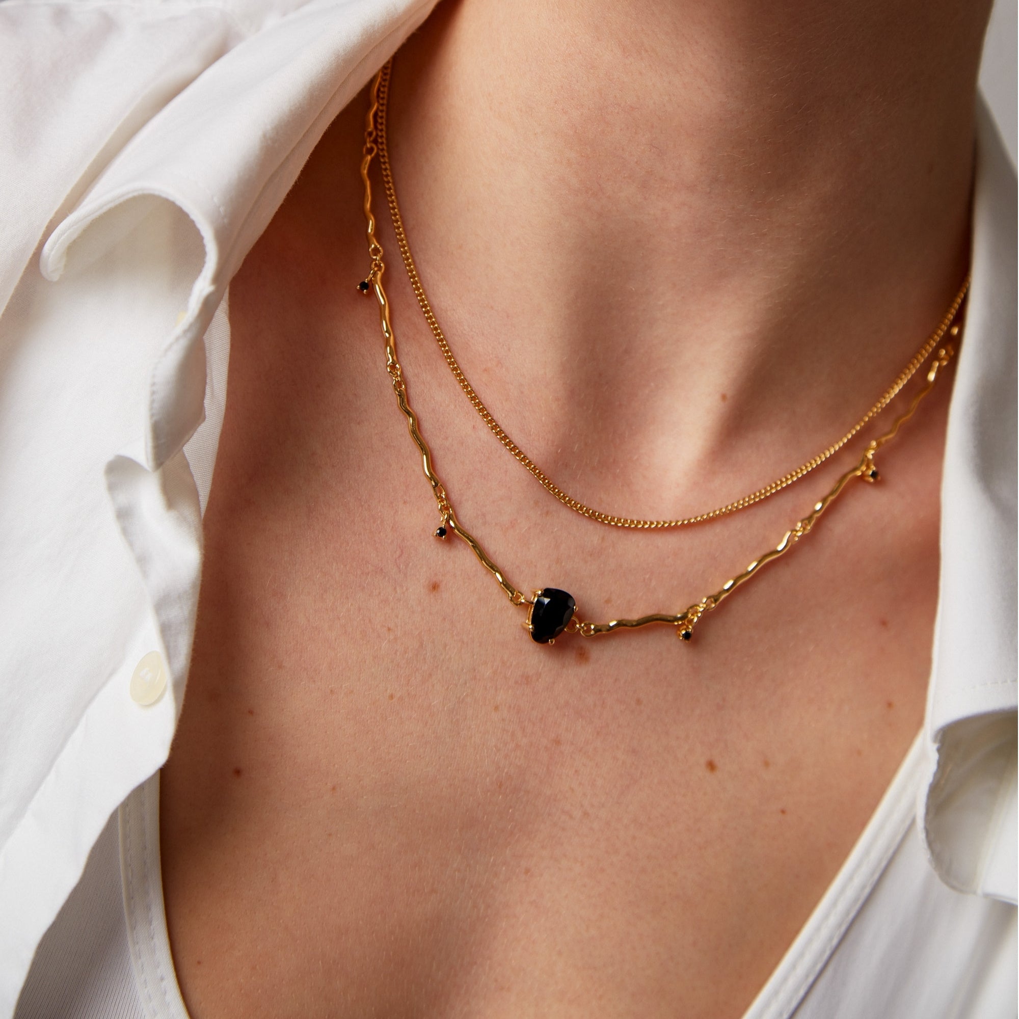 Add the "Hera" Yellow Gold Necklace with Natural Black Onyx to your collection to enjoy a sophisticated eye-catching accessory that combines classic elegance with dramatic modernity.