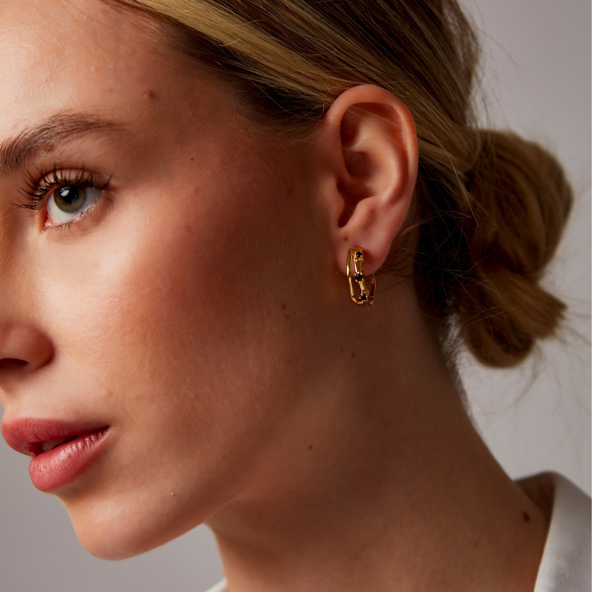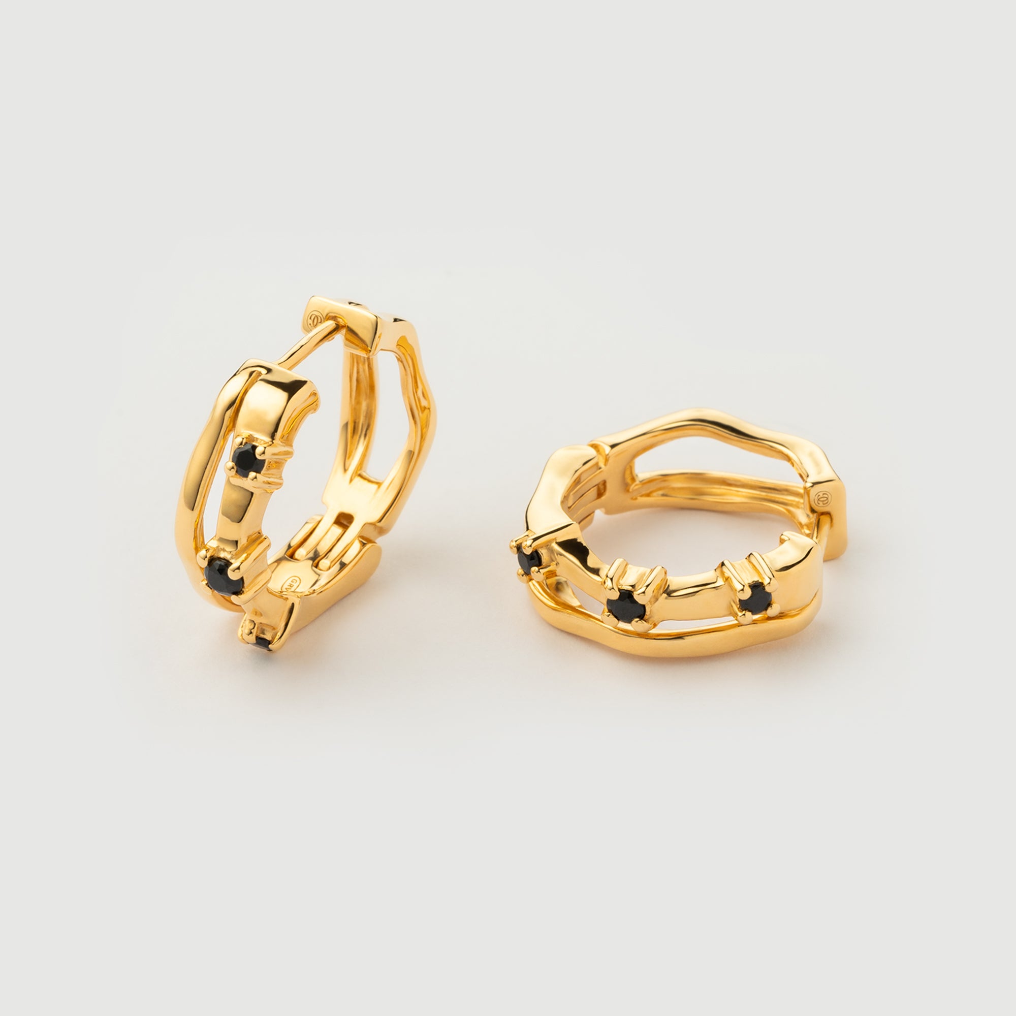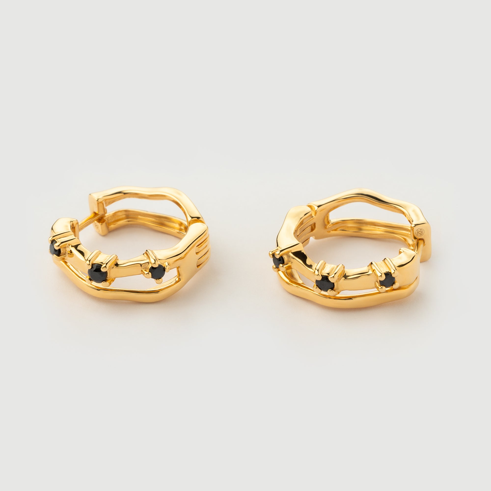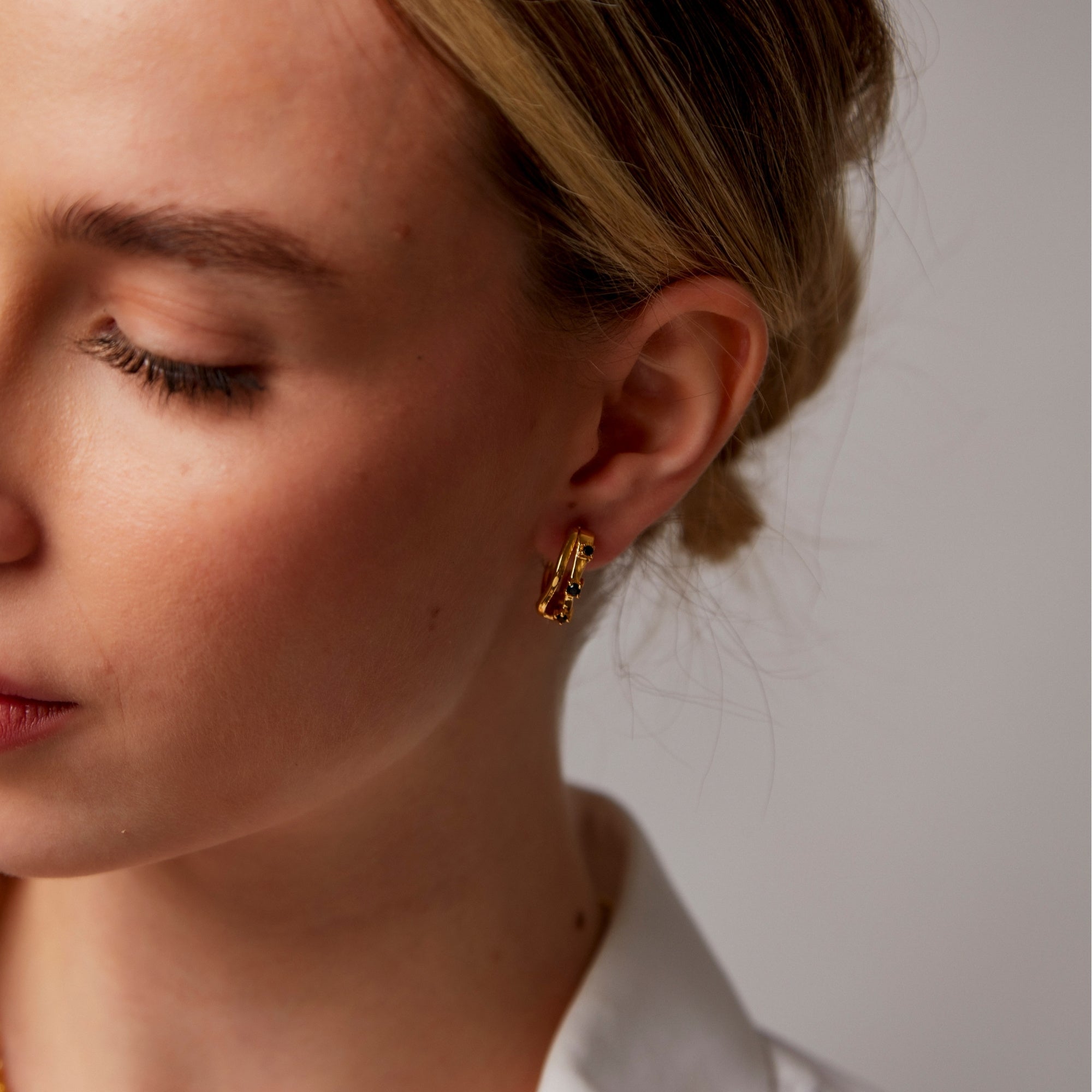 The "Hera" Yellow Gold with Natural Black Onyx are a style statement, breaking out of the box with their complex shapes and the elegant combination of the shine of the metal and the depth of the natural black onyx. Their sophisticated design turns every appearance into a memorable one. 18k yellow gold plating according to the French "Vermeil" standard adds a touch of luxury and superior quality.