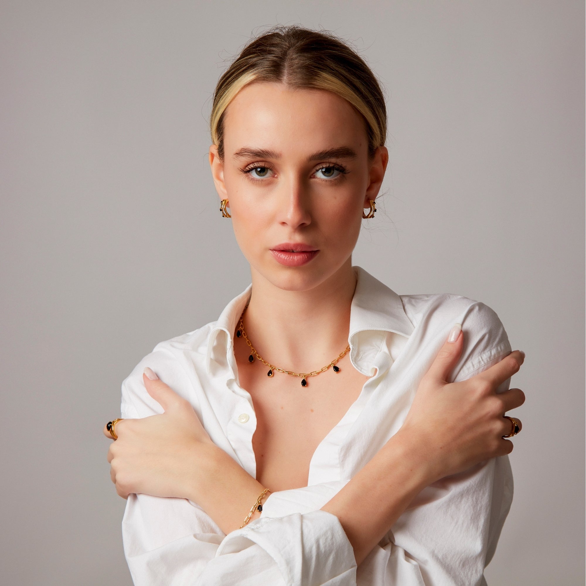 Add the "Hera" Yellow Gold with Natural Black Onyx to your collection to enjoy a unique and spectacular accessory, perfect to highlight your sophistication and distinct style.