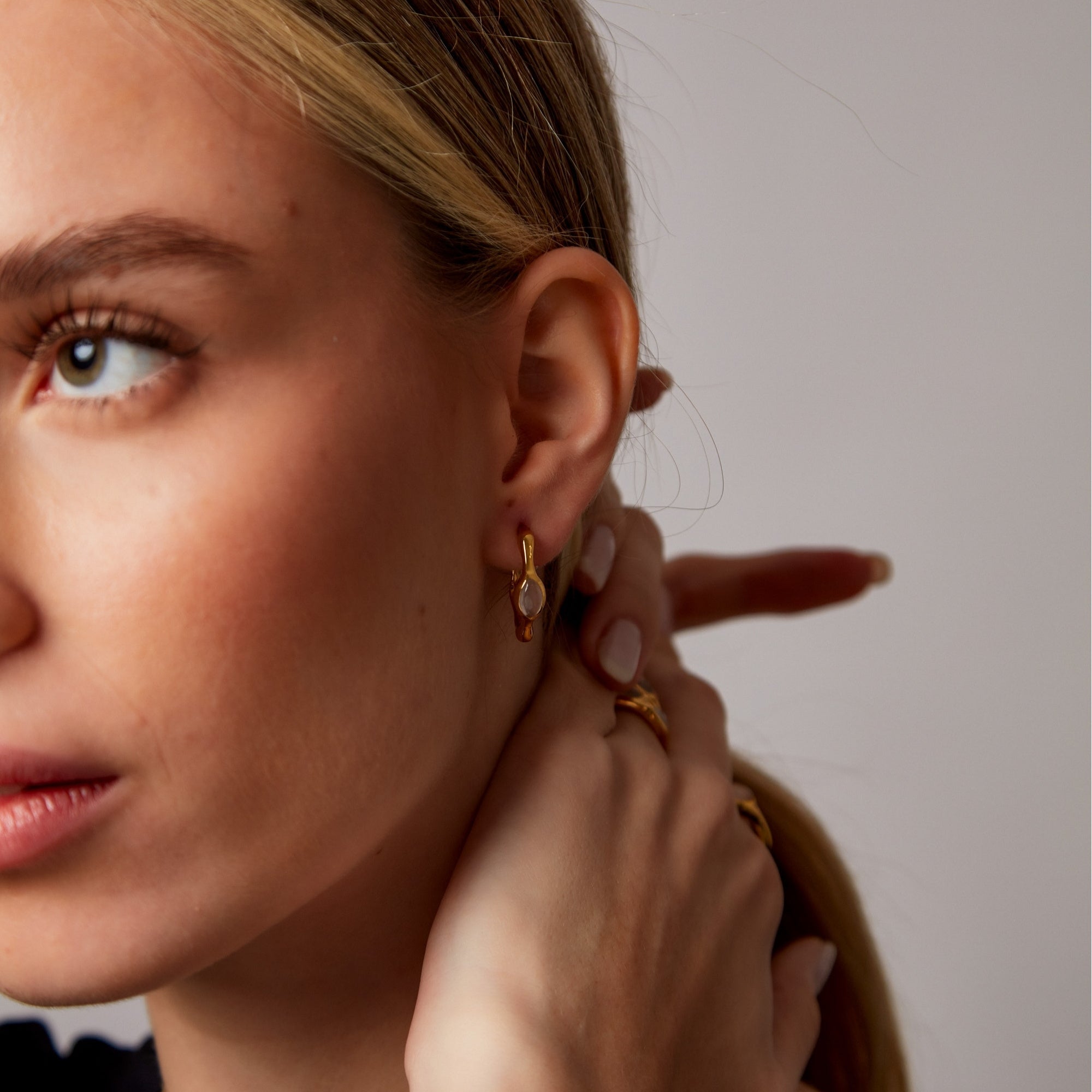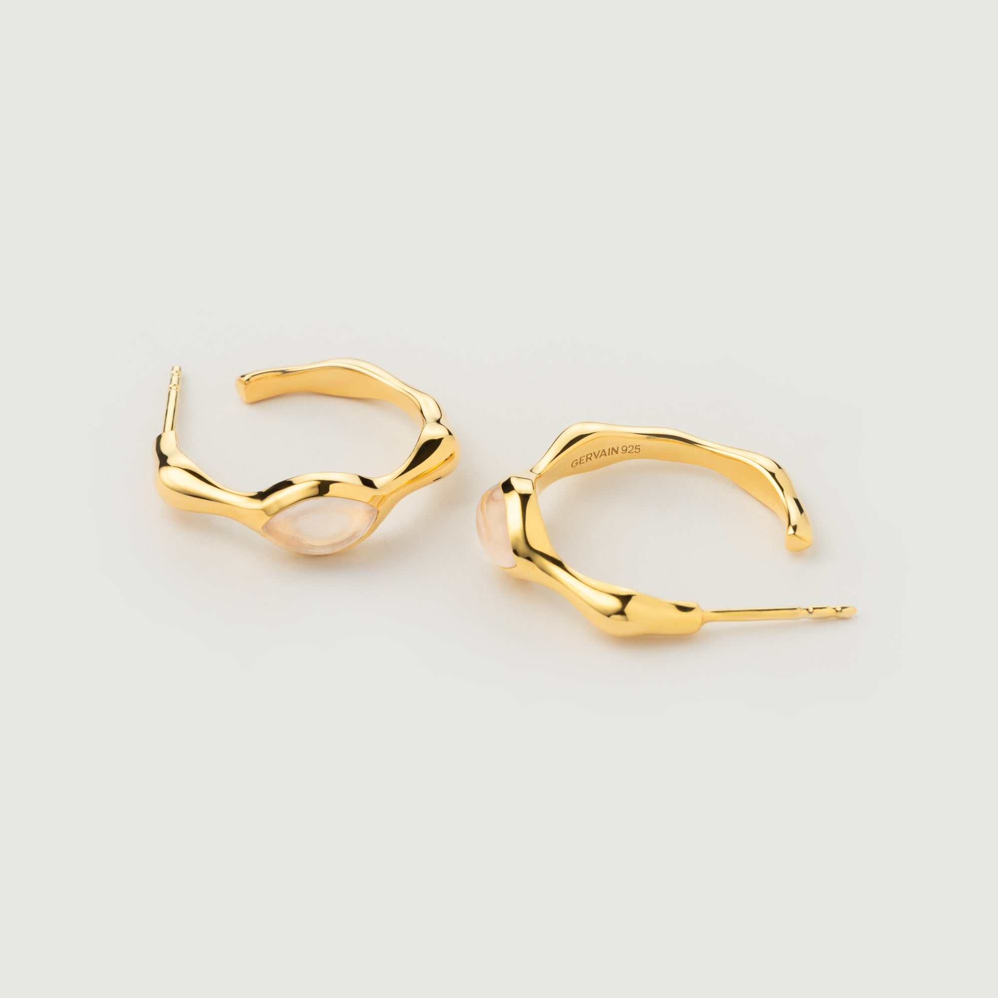 The "Lima" Yellow Gold Earrings with Natural Rose Quartz fascinate with their spectacular design, with organic shapes that evoke tranquility and inner peace. Decorated with natural rose quartz, this elegant accessory adds delicacy and sophistication to any outfit. 18k yellow gold plating, made according to the French "Vermeil" standard, offers a luxurious appearance and outstanding quality.