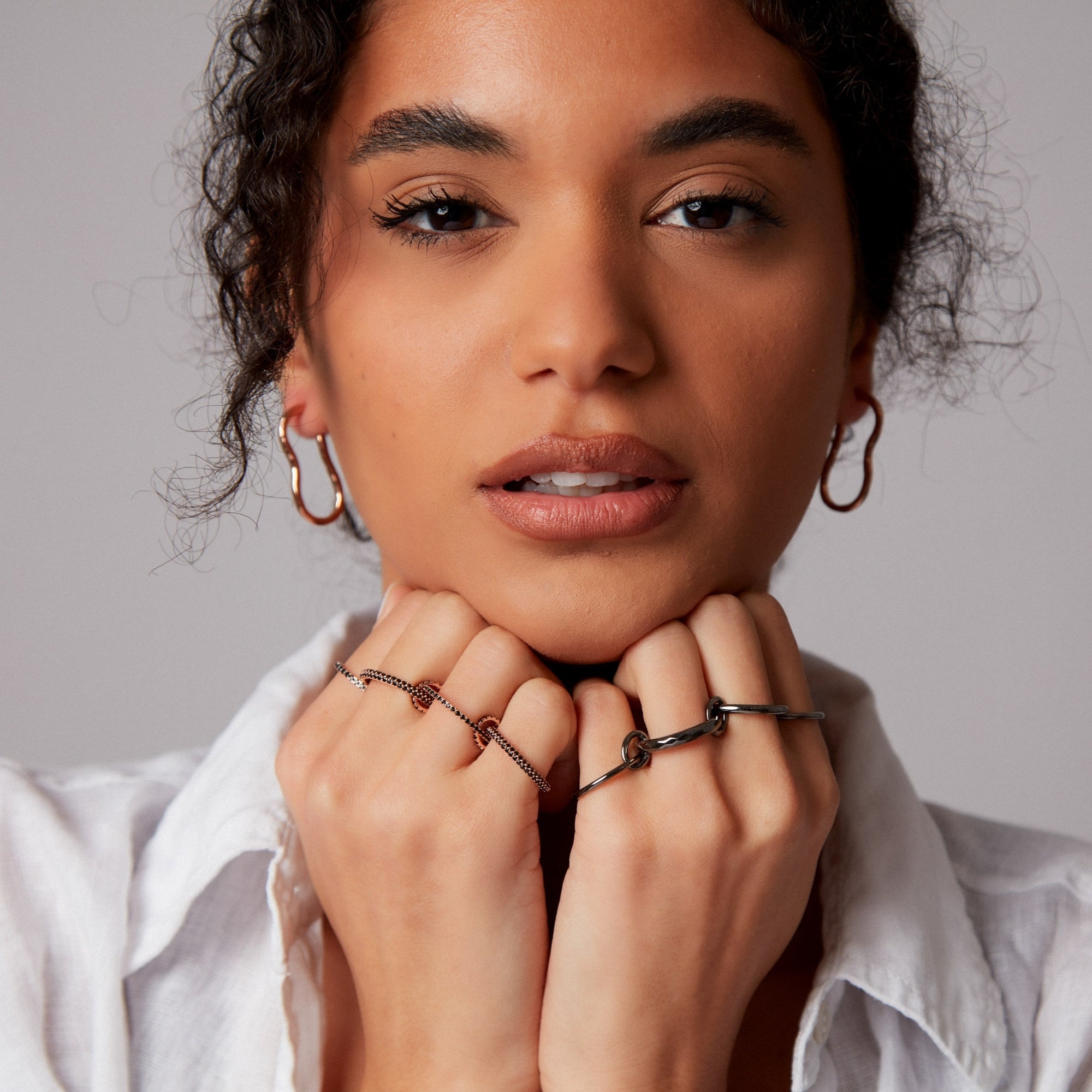 "Linkz" Rose Gold Ring with Natural Black Spinel