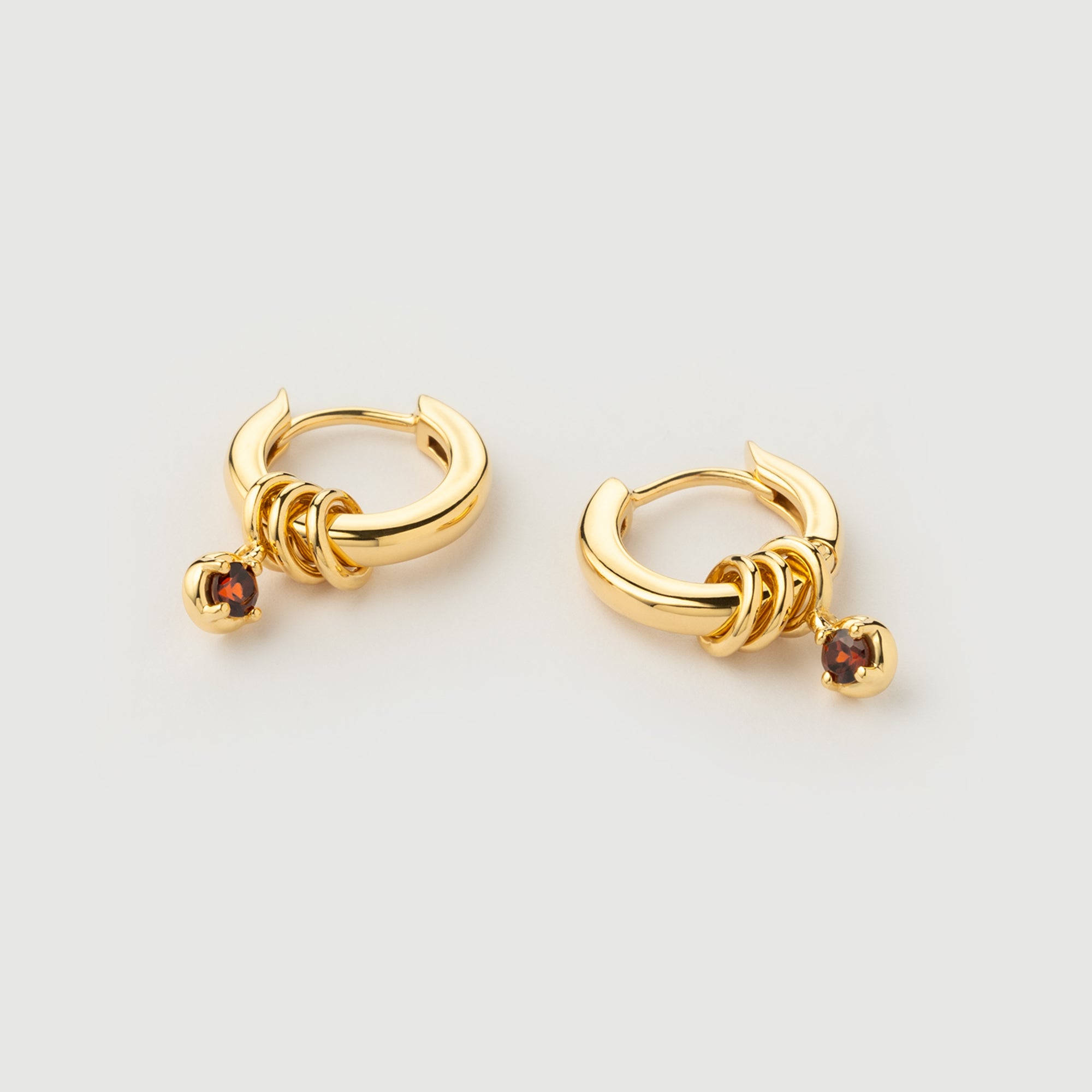 "Linkz" Yellow Gold Earrings with Natural Garnet