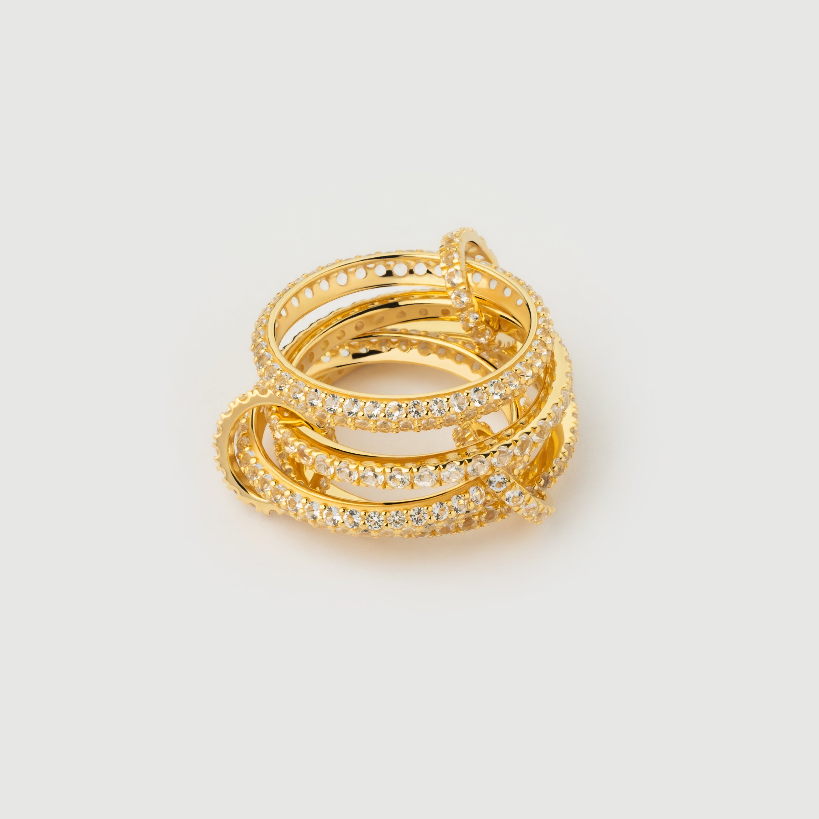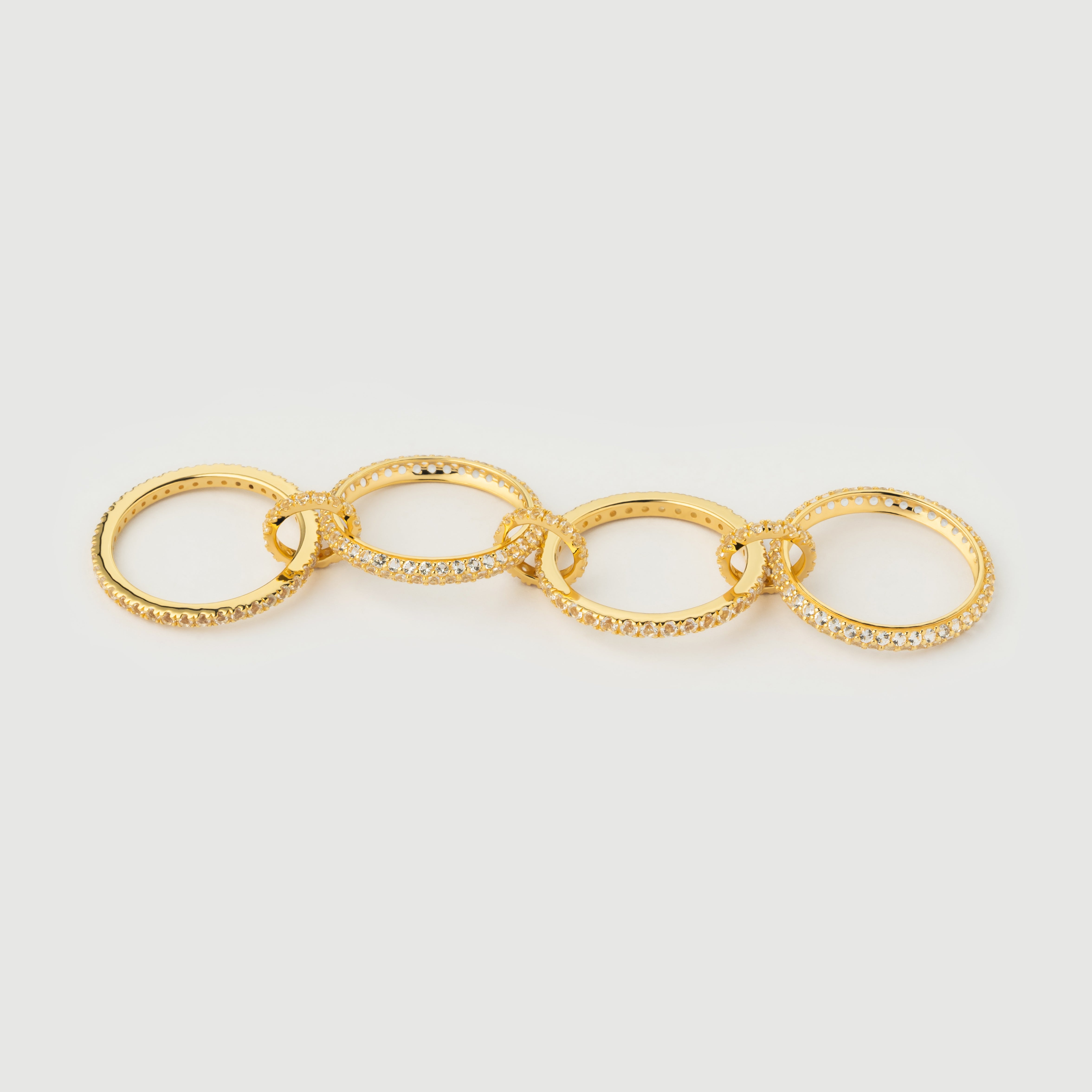 "Linkz" Orbit Yellow Gold Ring with Natural White Topaz