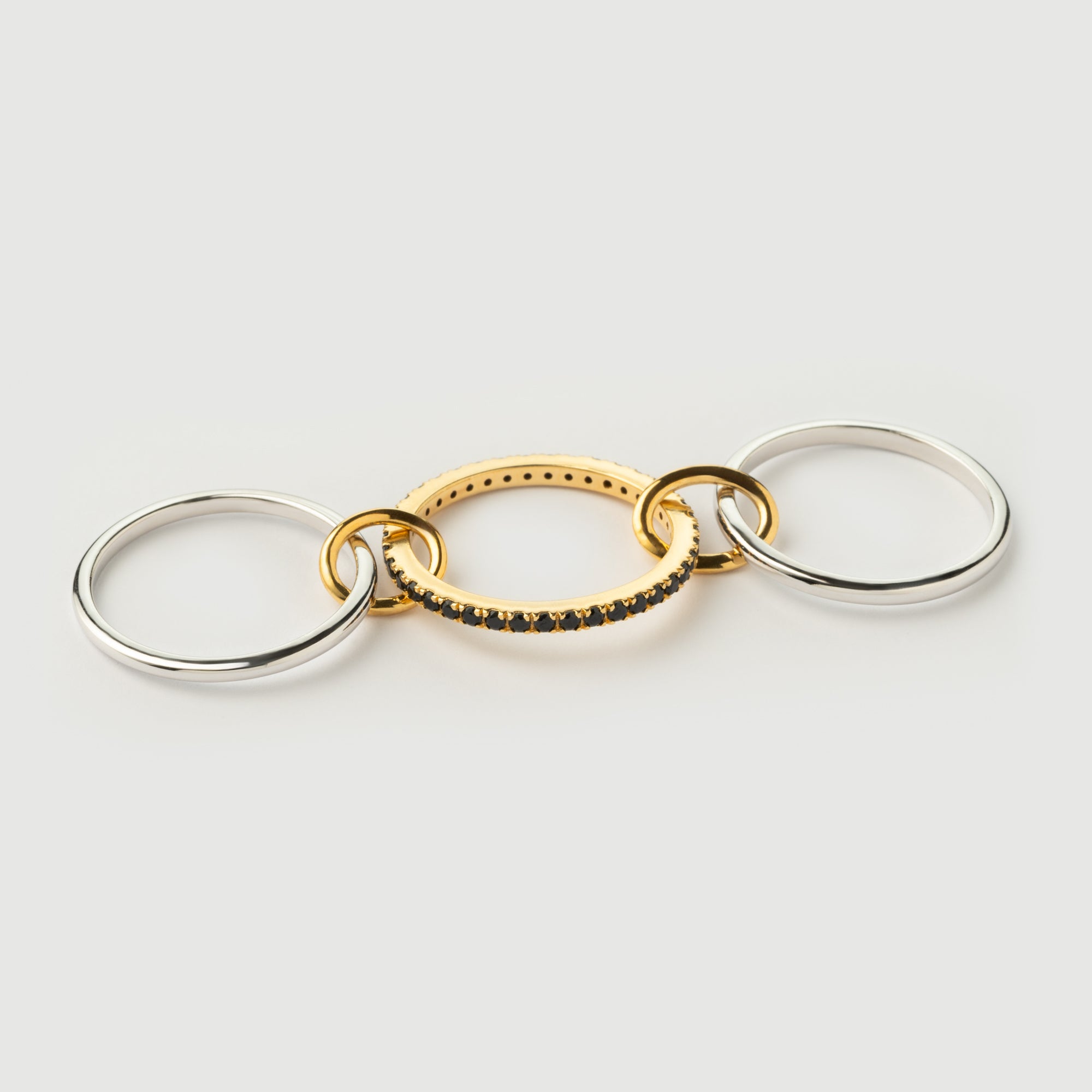 "Linkz" Yellow/White Gold Ring with Natural Black Spinel