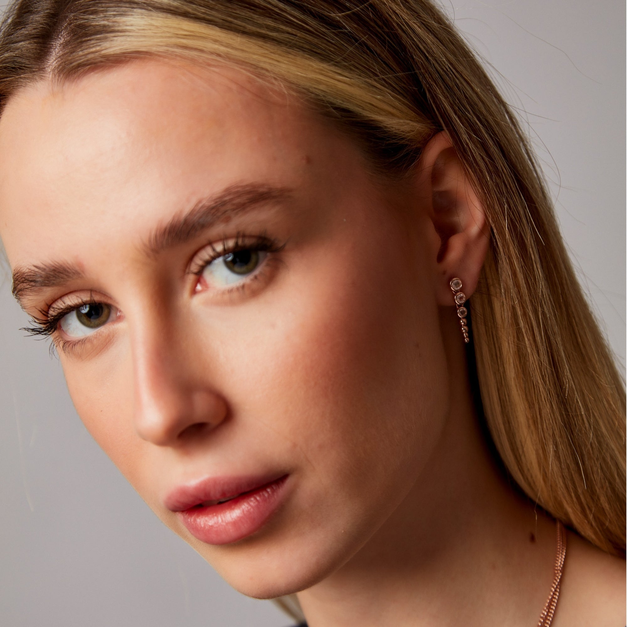 "Noura" Rose Gold Earrings with Natural Rose Quartz