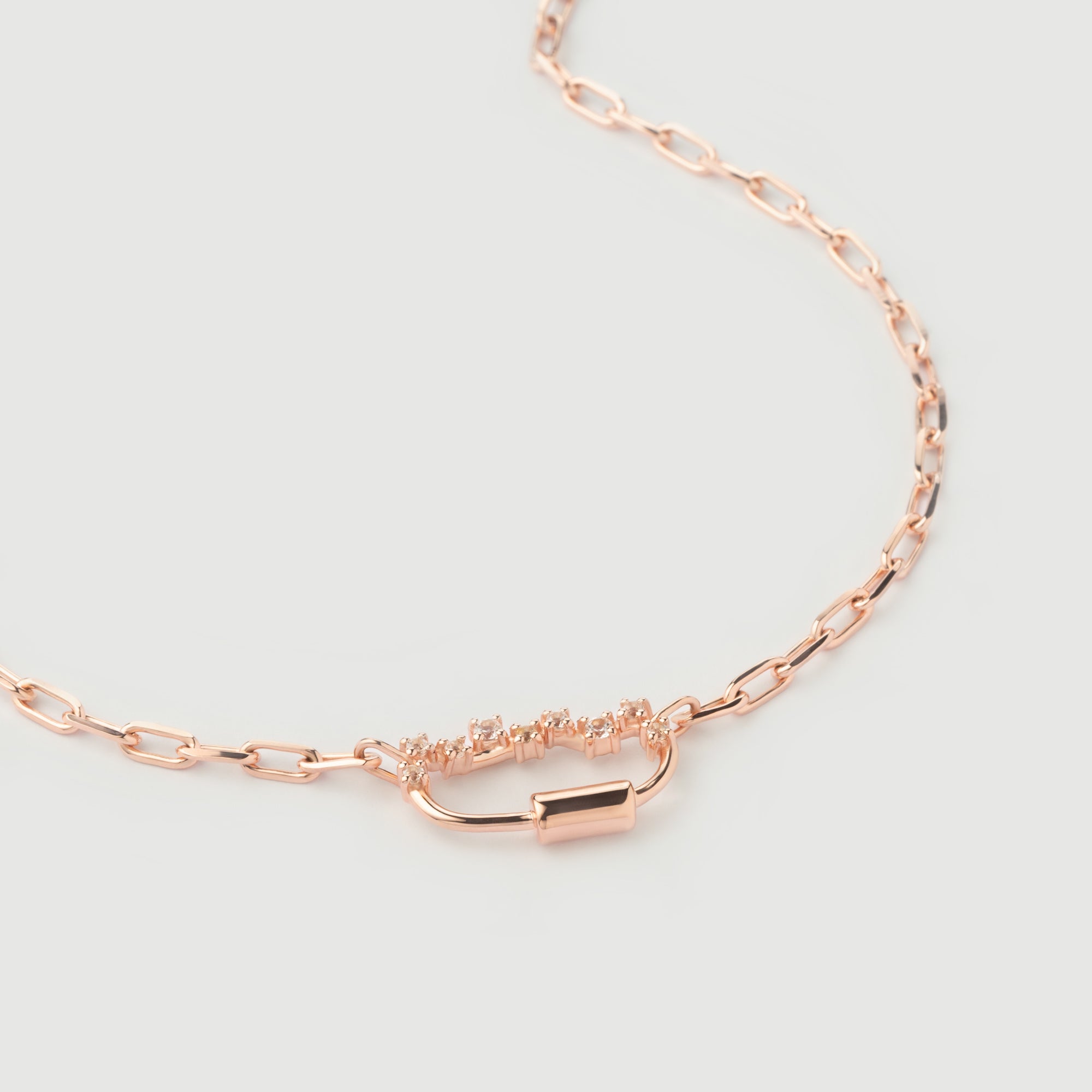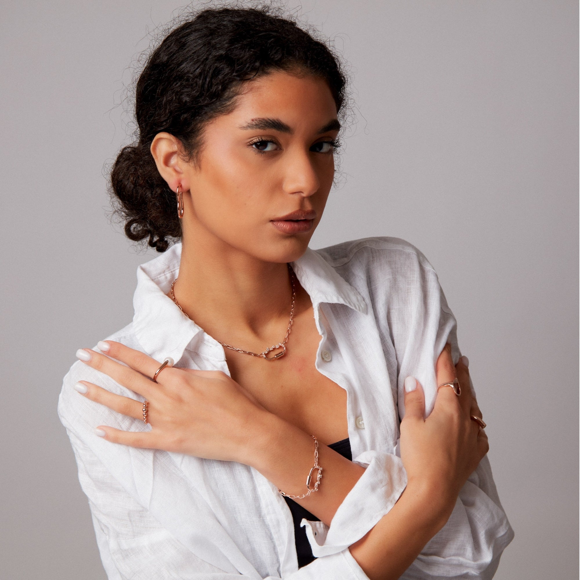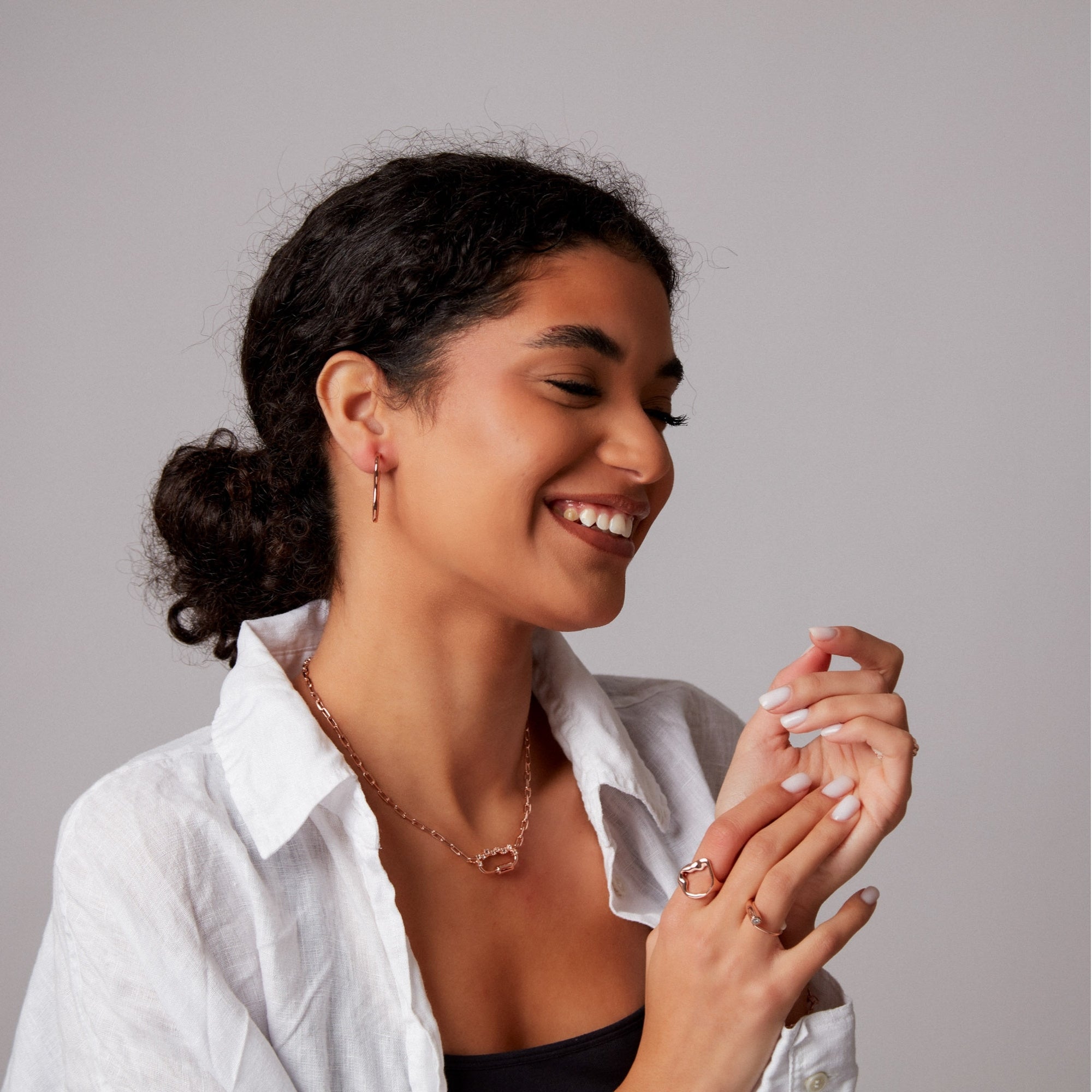 The "Poki" Rose Gold Necklace with Natural White Topaz surprises with its elegant simplicity and the feeling of freshness it exudes, being a central piece of the set from the same collection. Decorated with natural white topaz, this necklace adds a subtle touch of sparkle, making it the perfect accessory for any occasion. Its delicate and modern design makes it a versatile choice to complement elegant or casual outfits.
