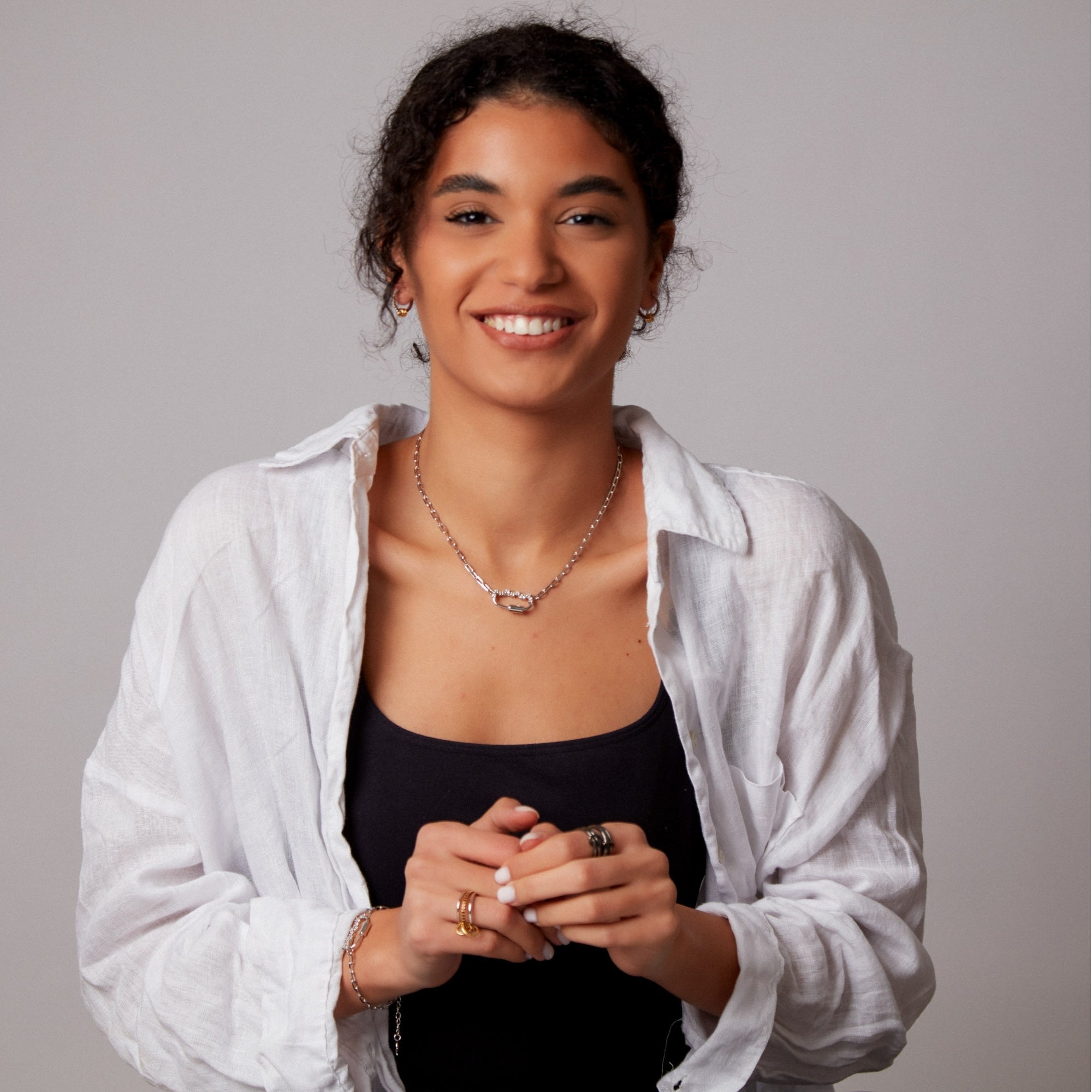 The "Poki" White Gold Necklace with Natural White Topaz brings a touch of freshness and elegance, perfectly complementing the set from the same collection. Decorated with natural white topaz, this necklace is an ideal choice to highlight your style on any occasion. Its subtle yet sophisticated design makes this piece a versatile accessory, perfect to complement any outfit.