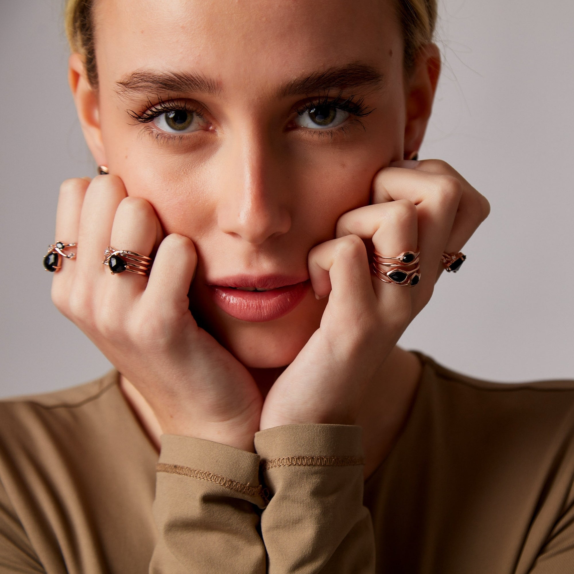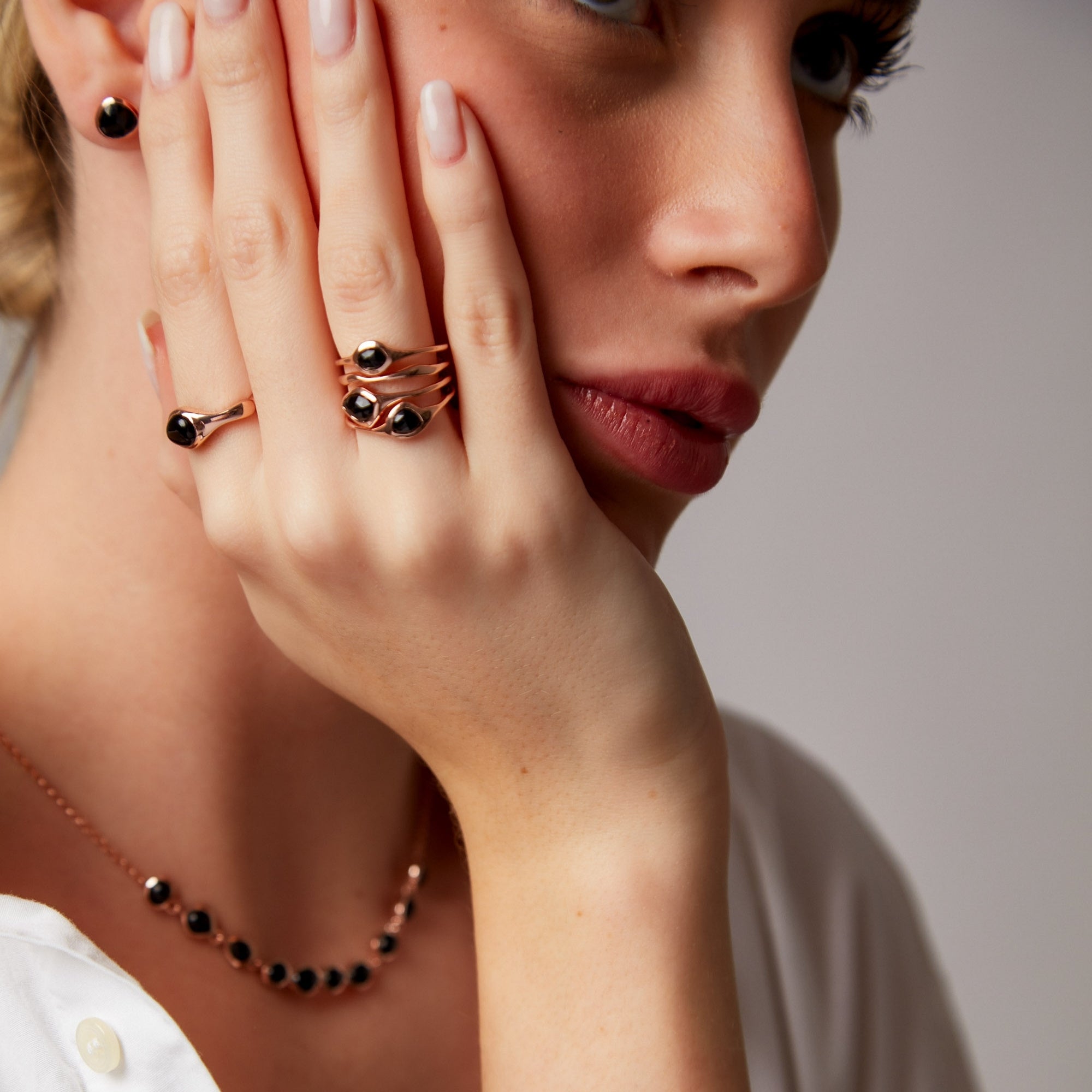 Complete your collection with the "Satta" Rose Gold Ring with Black Onyx, a refined and characterful jewel, ideal for adding a touch of mystery and elegance to any outfit.