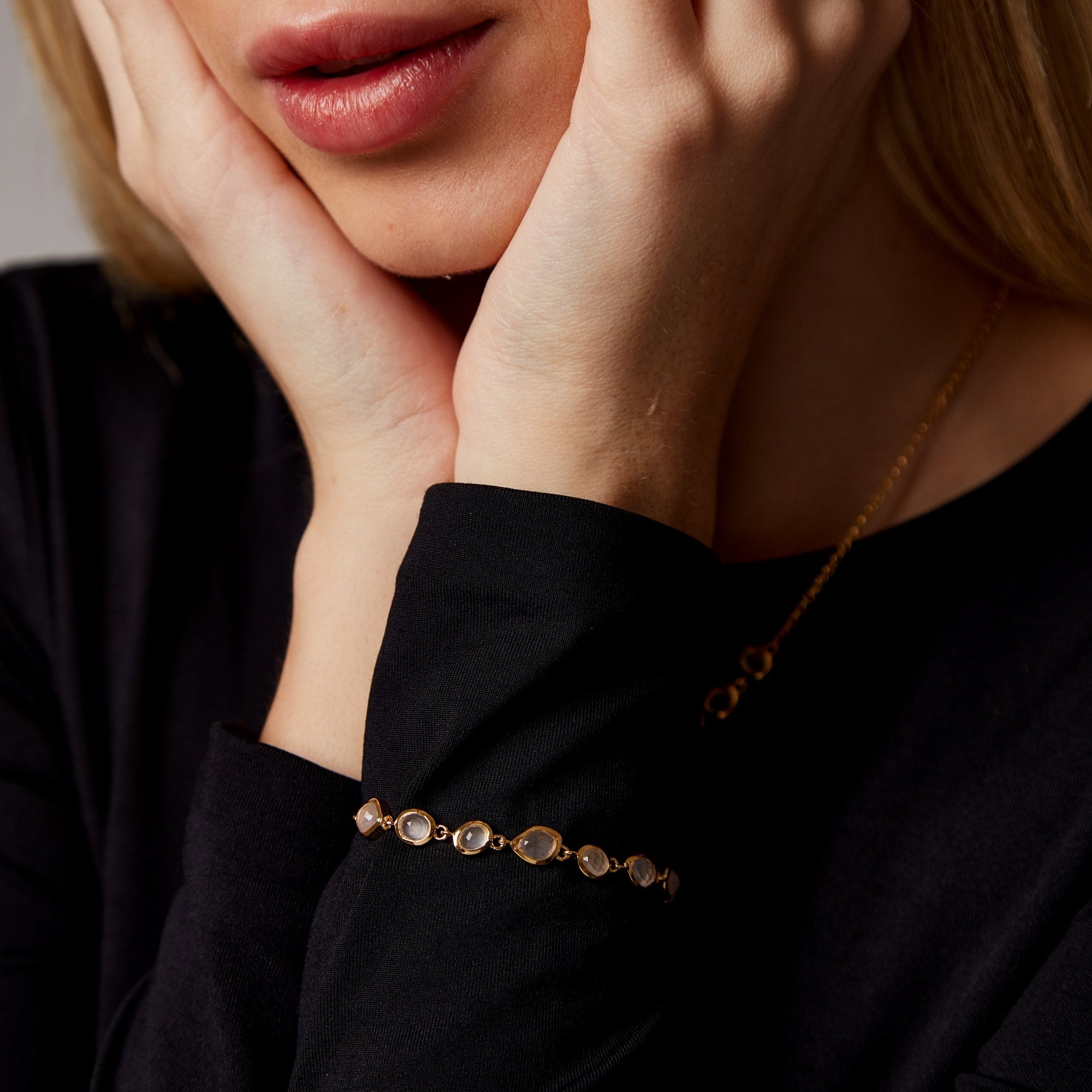 "Satta" Yellow Gold Bracelet with Natural Rose Quartz