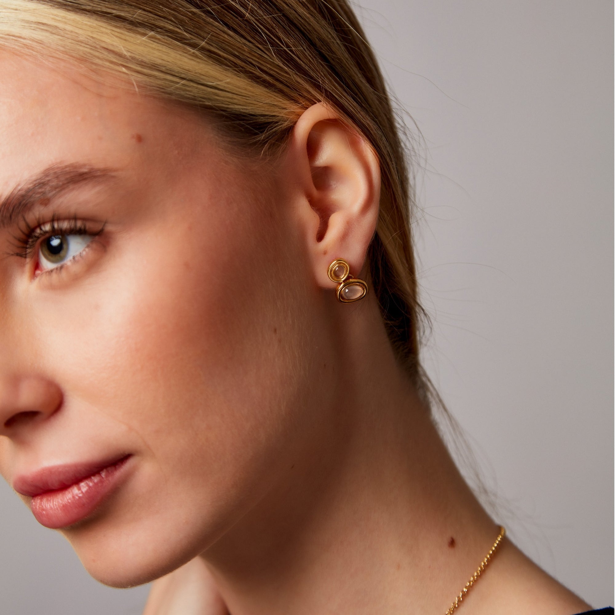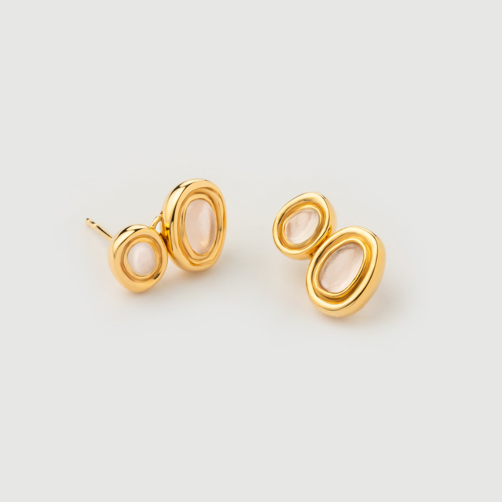 "Satta" Yellow Gold Earrings with Natural Rose Quartz