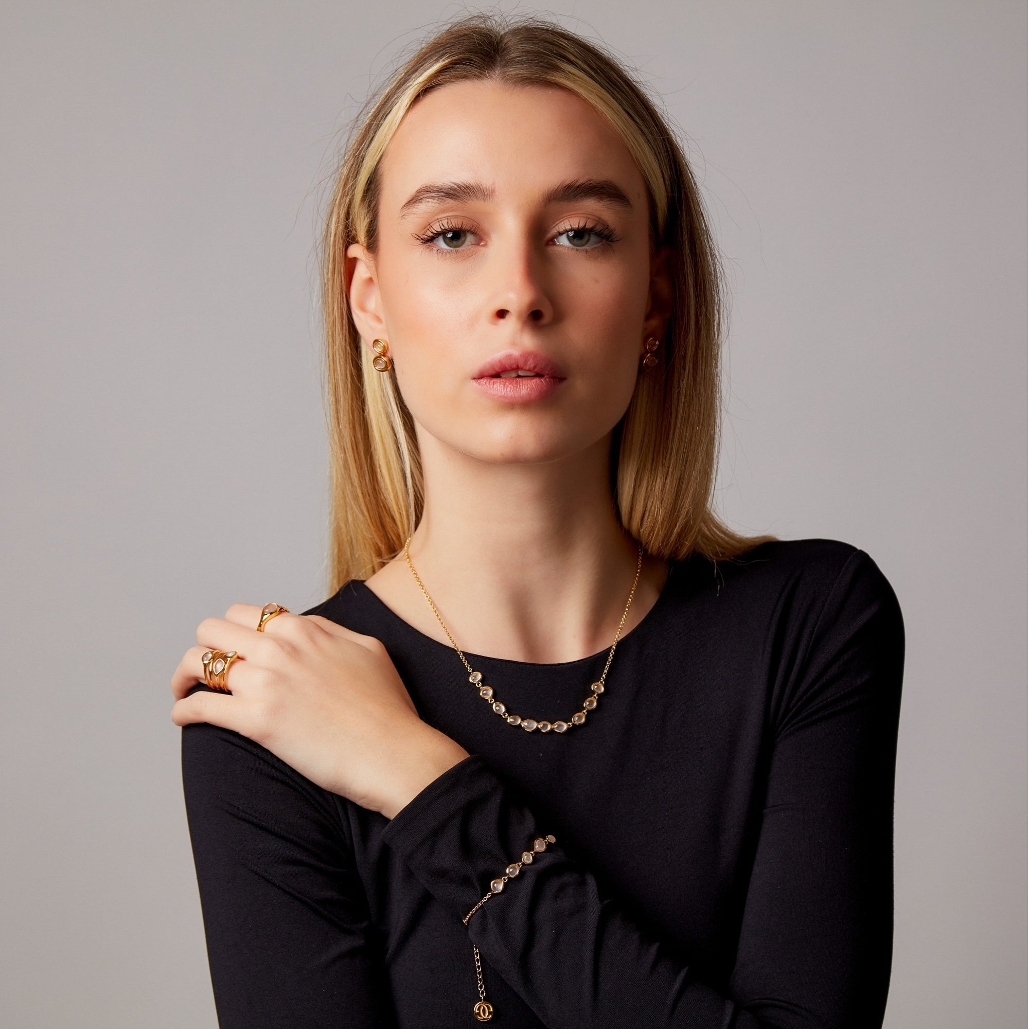The "Satta" Yellow Gold Necklace with Natural Rose Quartz is a spectacular piece, ideal for any occasion, offering a show of brilliance thanks to the masterfully polished natural rose quartz. Its refined design, perfectly complemented by the bracelet from the same collection, adds elegance and sophistication to any outfit. 18k yellow gold plating, made according to the French "Vermeil" standard, gives it a luxurious and special finish.