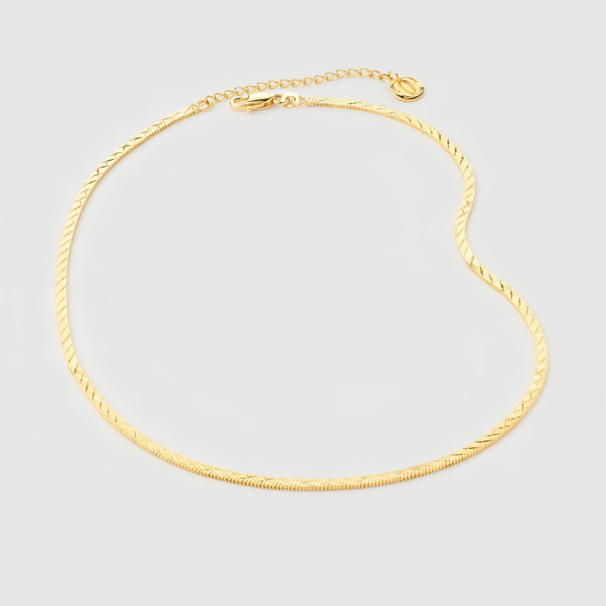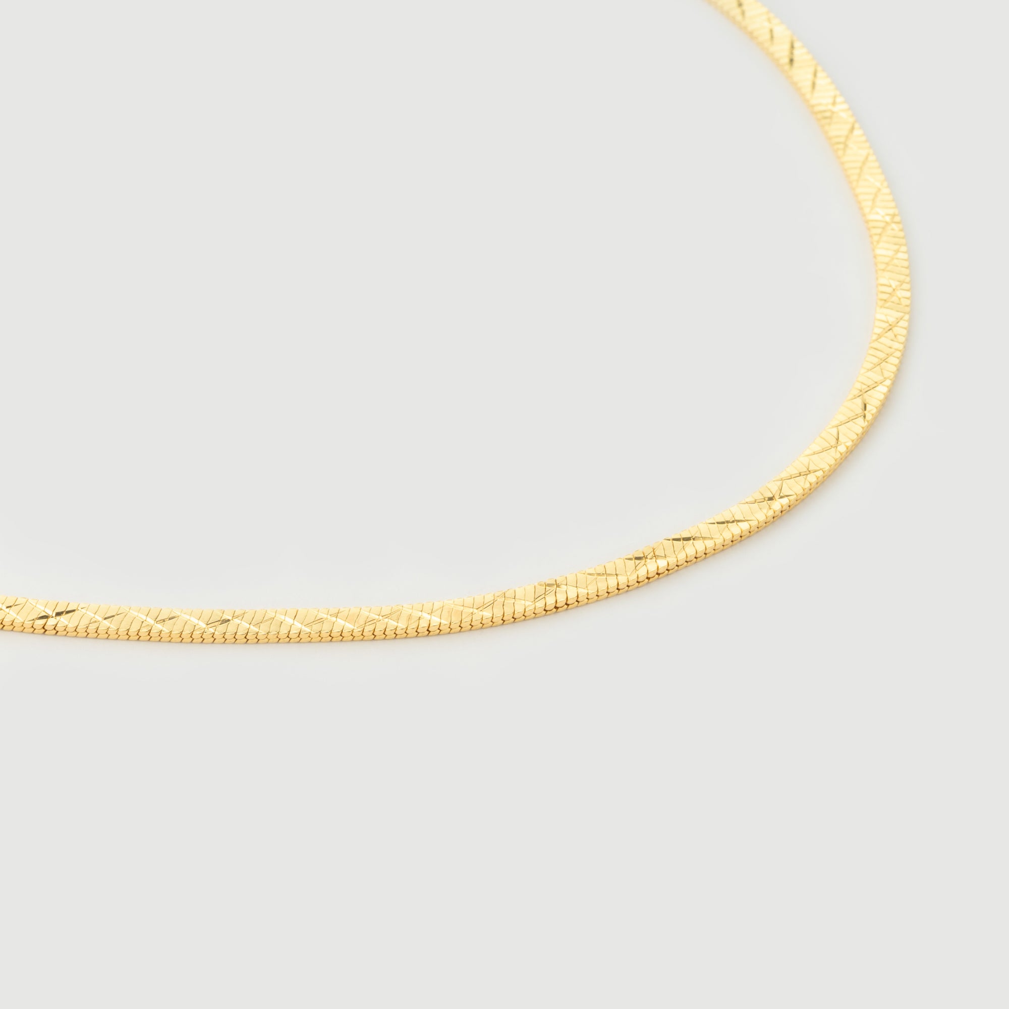 This textured chain necklace is a versatile and sophisticated piece of jewelry, perfect for any occasion. Its elegant and complex design makes it ideal to be worn alone or combined with other accessories to create a unique and refined look. 18k yellow gold plating adds a luxurious finish, highlighting the craftsmanship of the details.