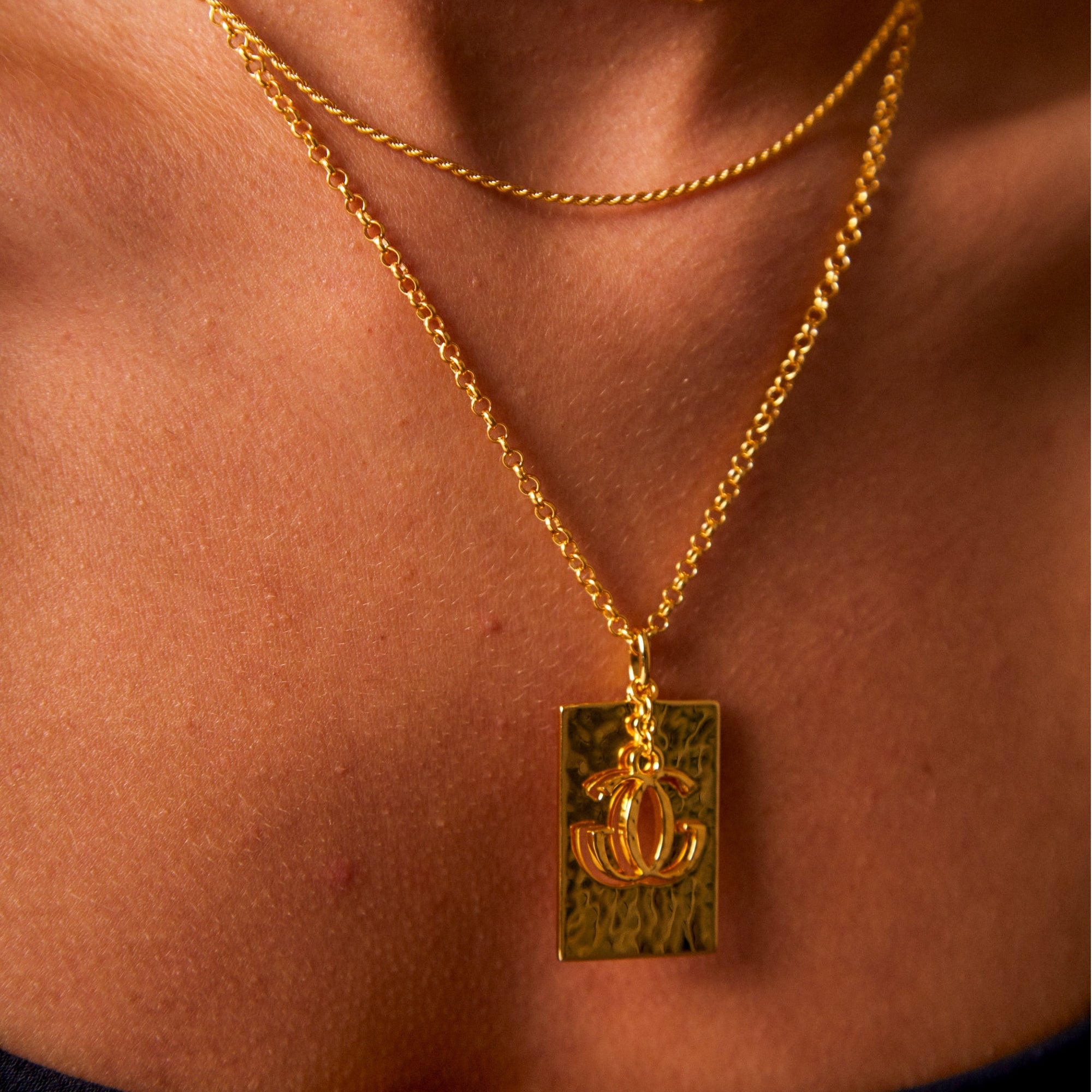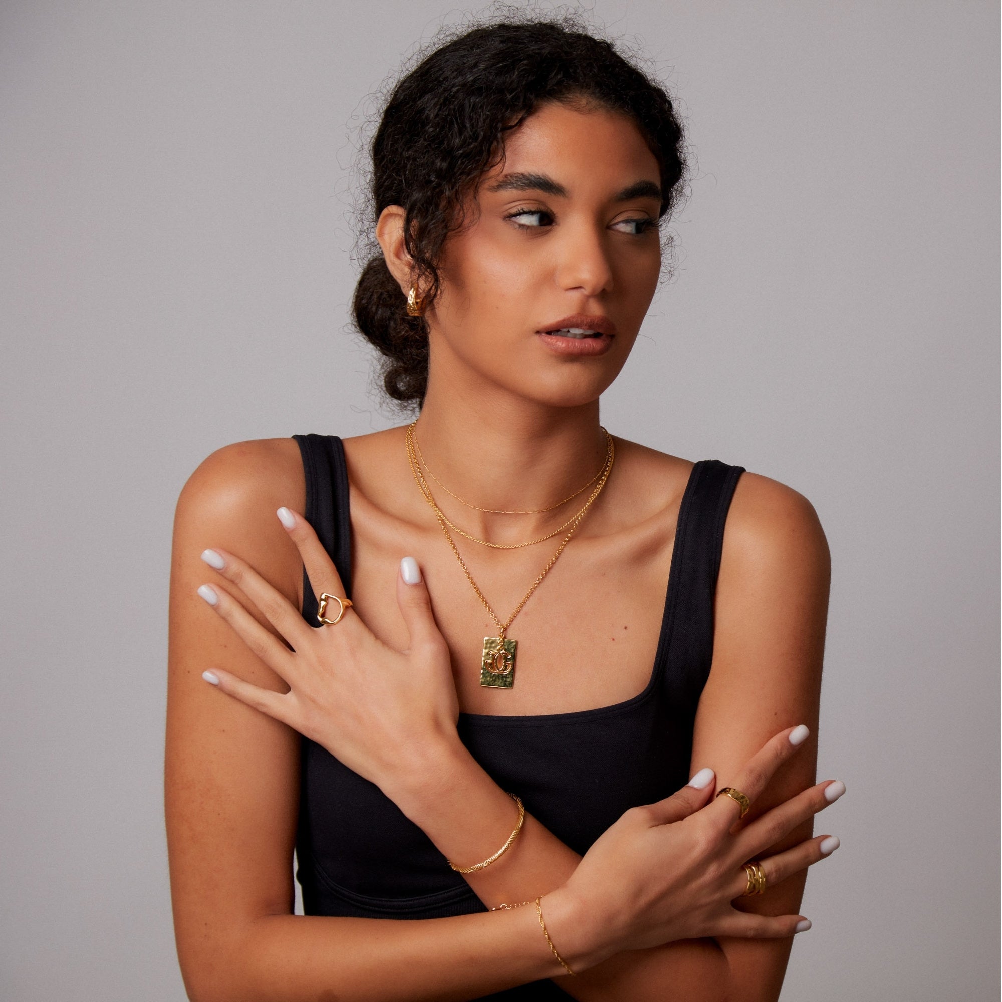 This textured chain necklace is a versatile and sophisticated piece of jewelry, perfect for any occasion. Its elegant and complex design makes it ideal to be worn alone or combined with other accessories to create a unique and refined look. 18k yellow gold plating adds a luxurious finish, highlighting the craftsmanship of the details.