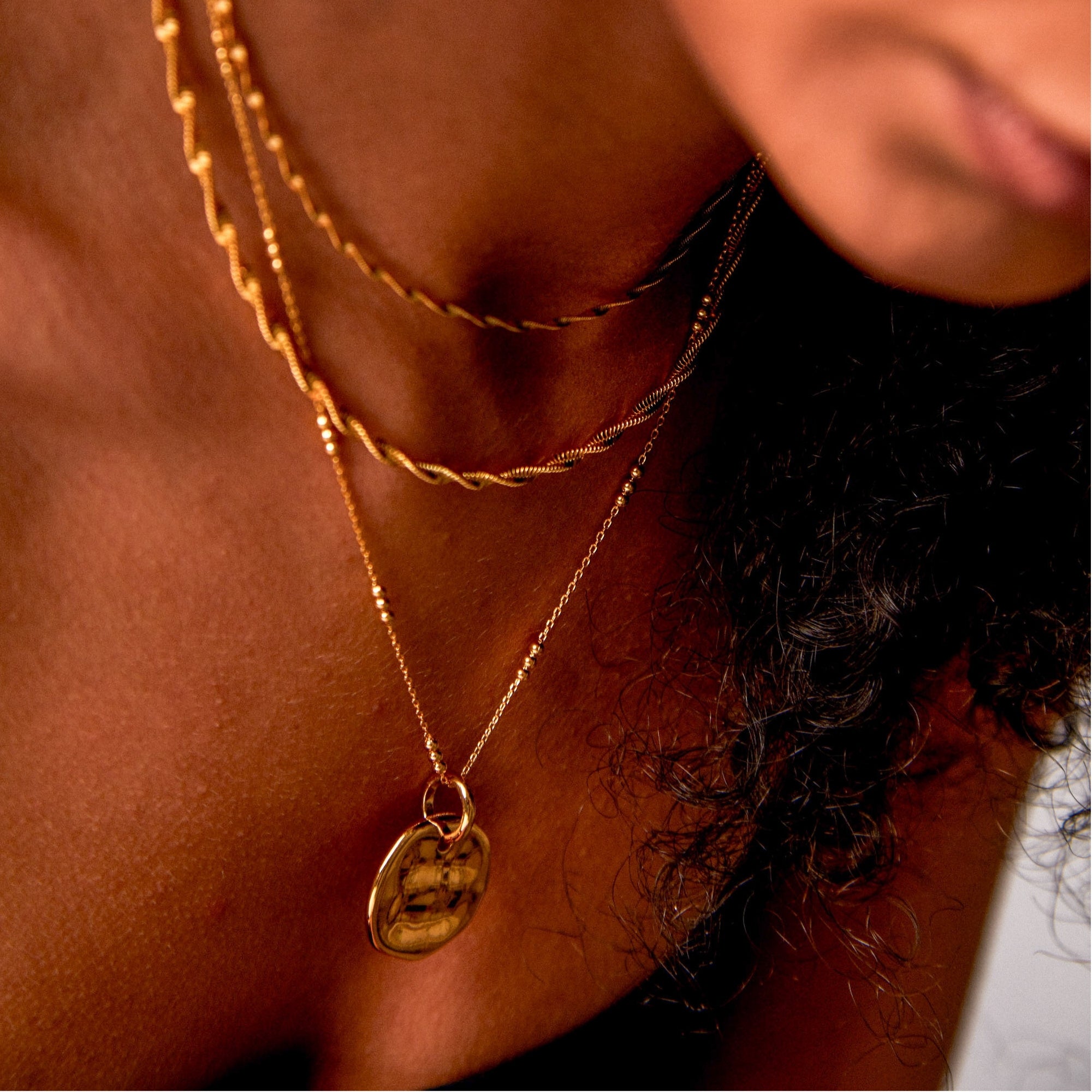 Pandantivul "Magma" Rotund completează cu eleganță setul cu același nume, oferind un design distinct inspirat de textura metalului topit. Suprafața sa unică reflectă lumina diferit în funcție de momentul zilei, aducând un efect vizual captivant și sofisticat. Perfect pentru a fi purtat cu unul sau mai multe lanțuri din colecția GERVAIN, acest pandantiv este alegerea ideală pentru cei care caută un accesoriu expresiv și modern.